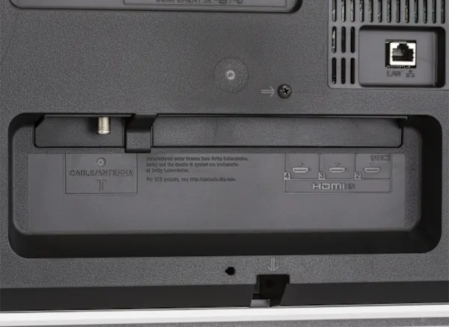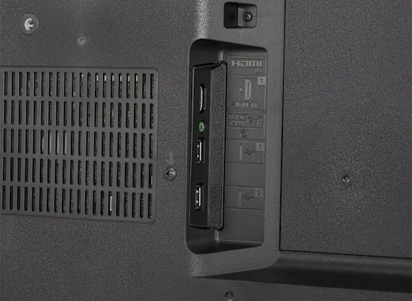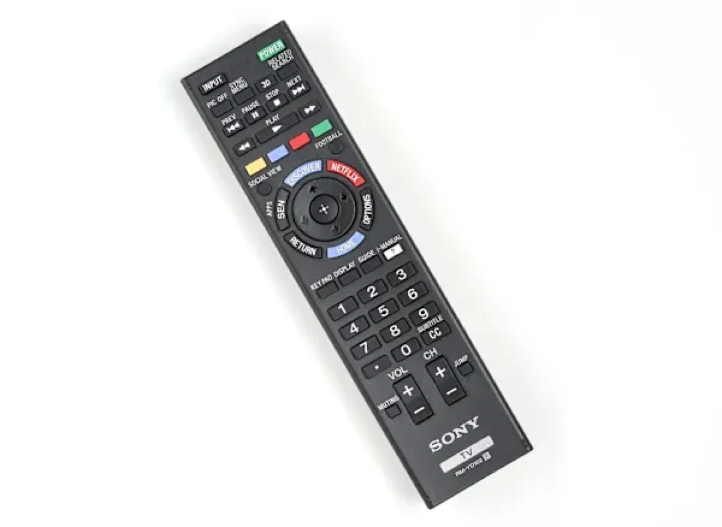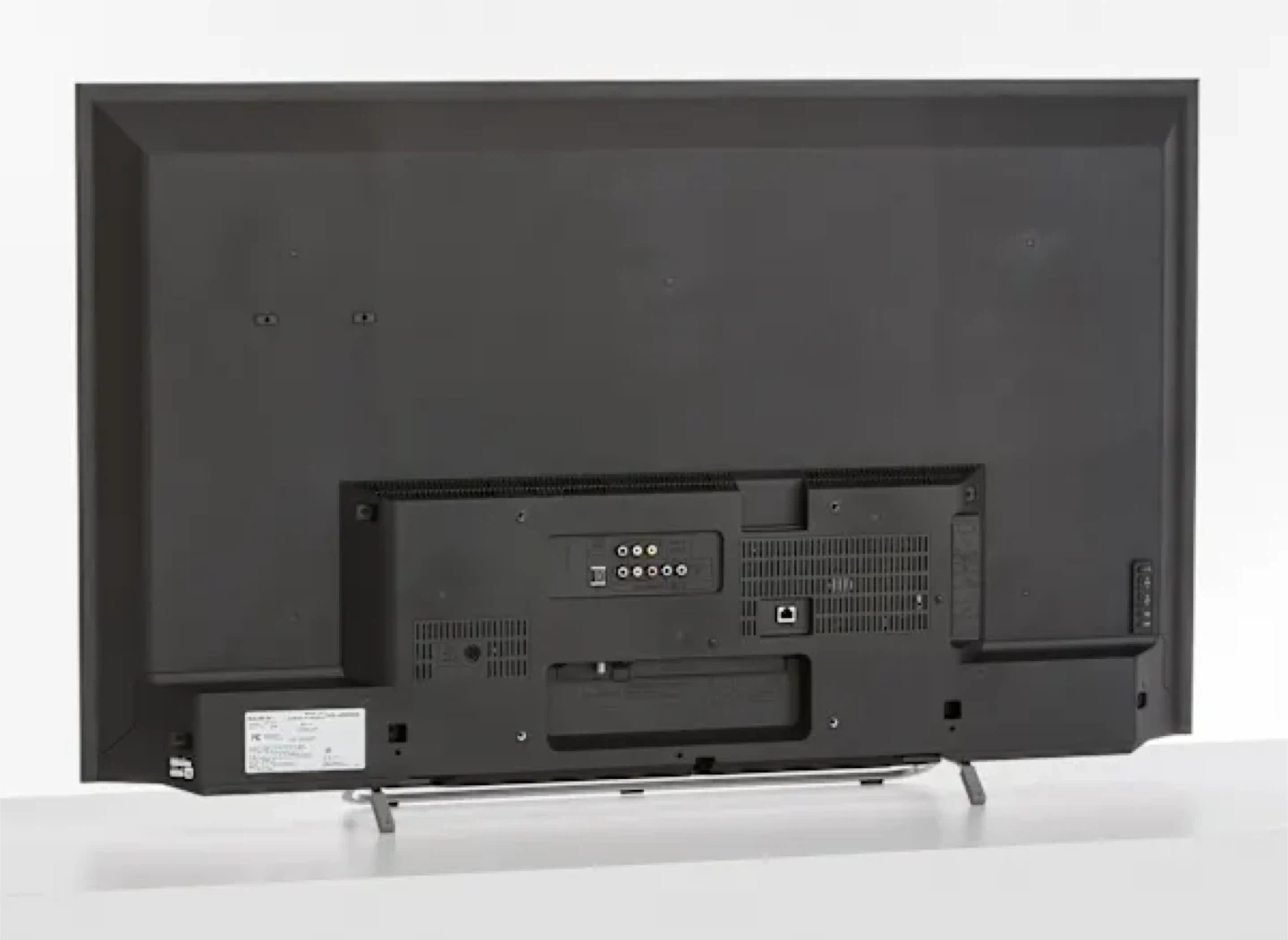 This is a Sony BRAVIA television with a remote control included. It has multiple HDMI and USB ports on the side and back for connectivity. A LAN port is also available.