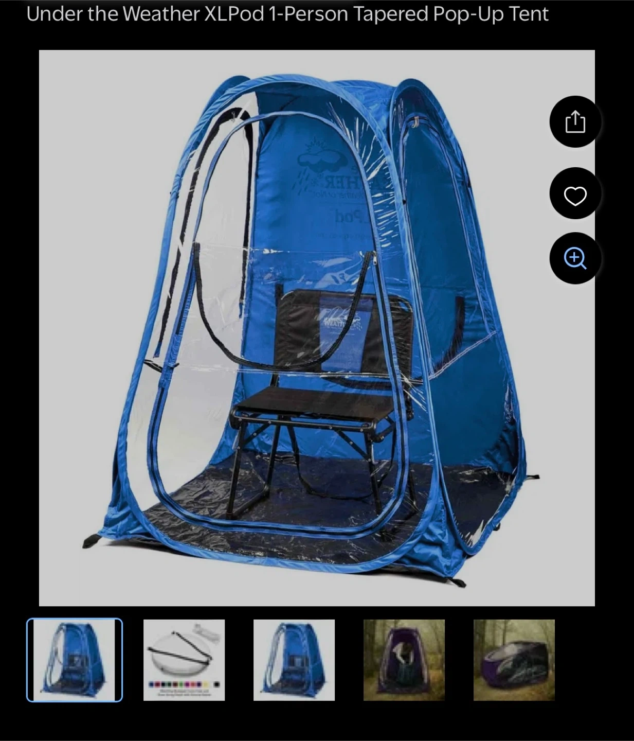 This is an OriginalPod XL pop-up tent by Under the Weather. It's designed for one person and offers protection from the weather. Great for outdoor events or sporting games! Never used.