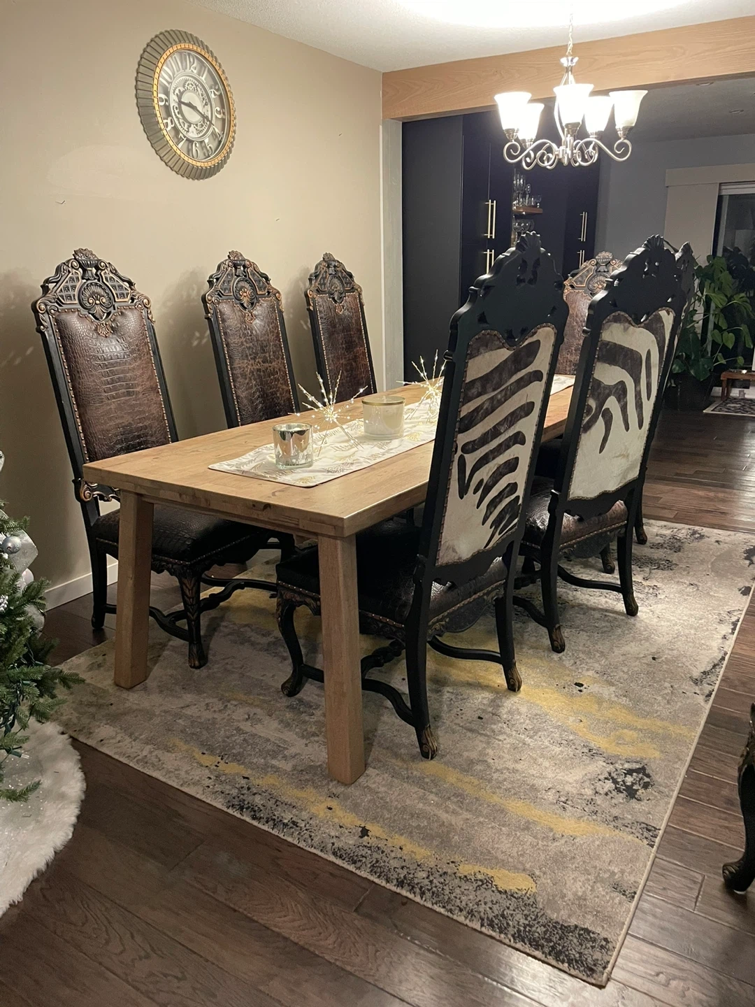 Set of 8 Dining Chairs with Zebra and Crocodile Uphol + Hutch