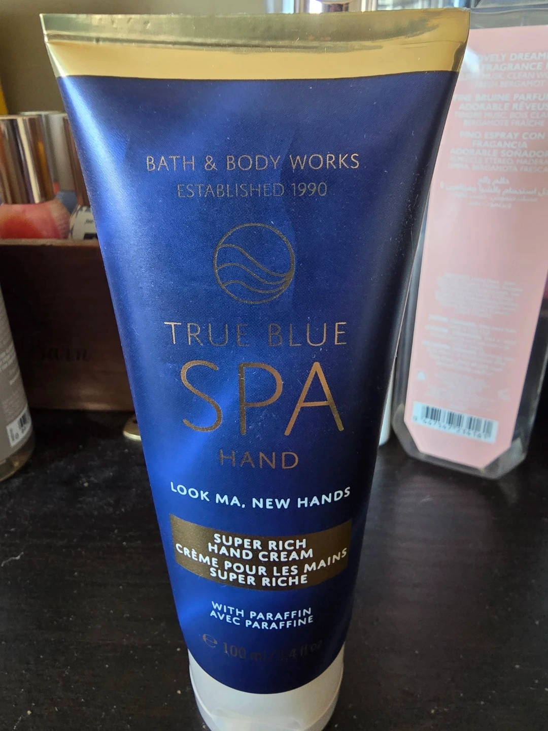 This is a Bath & Body Works True Blue Spa Super Rich Hand Cream. It's a hydrating hand cream with paraffin. 100 ml / 3.4 fl oz.