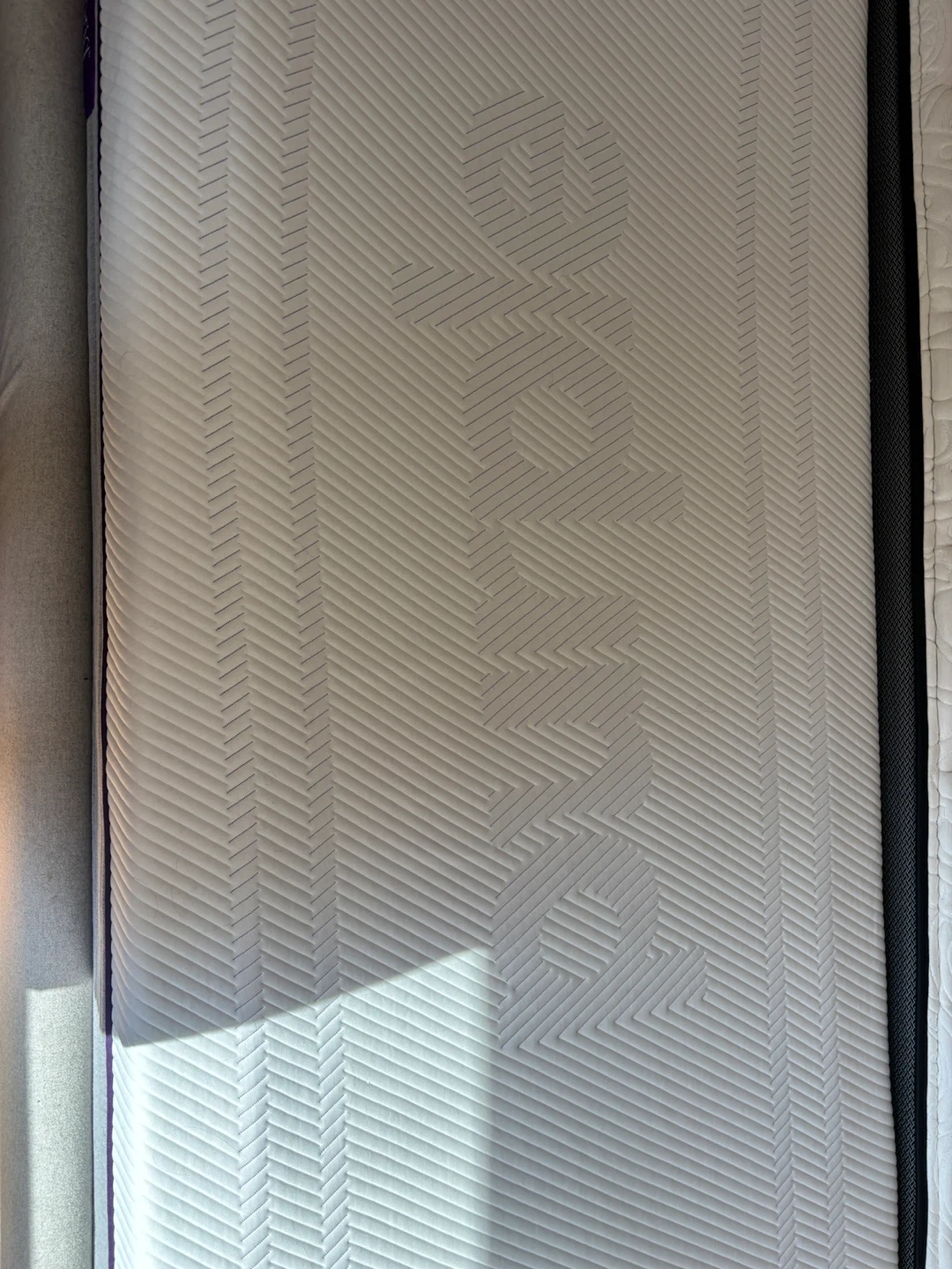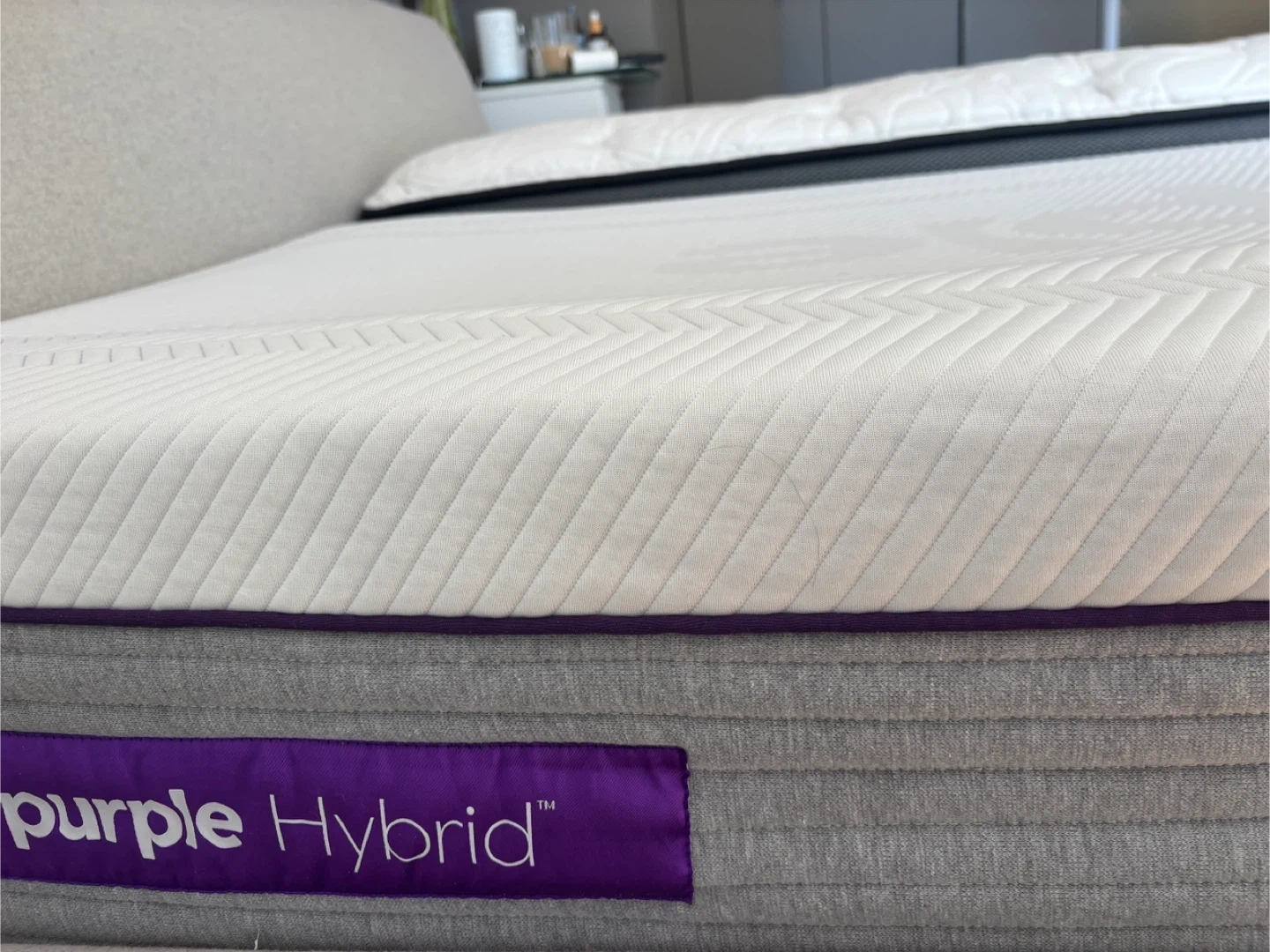 This is a Purple Hybrid mattress. It features a comfort grid for support and breathability. The cover is made of a soft, breathable fabric. This mattress is designed for a comfortable and cool sleep experience.No damage, pet free, smoke free home. Like new, 300