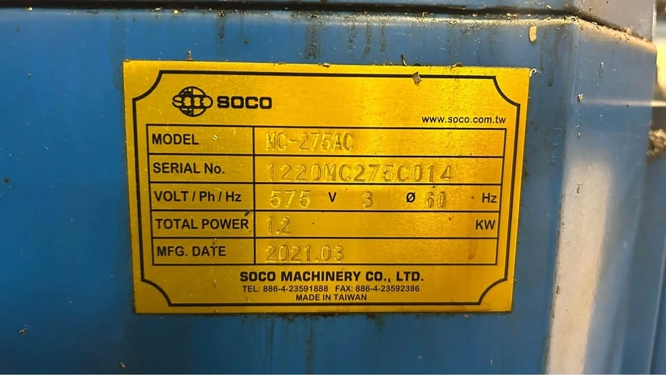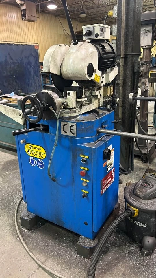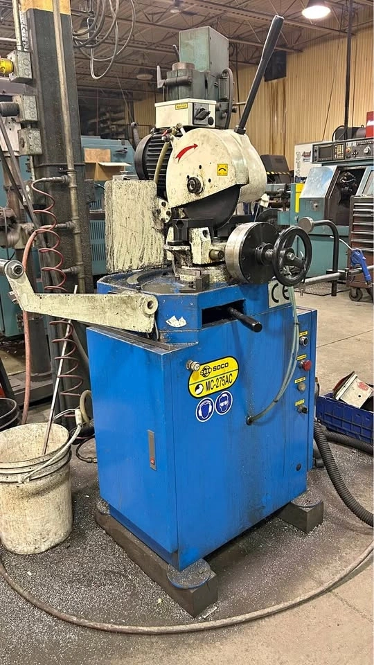 I'm selling a used SOCO MC-275SAC cold saw, perfect for precision metal cutting. It has a robust build and efficient operation, ready to tackle various industrial applications. Specifications: Model: MC-275SAC, Voltage: 575V, Phase: 3, Frequency: 60 Hz, Power: 1.2 Kw, Manufactured: 2021. Feel free to message if you have any questions!