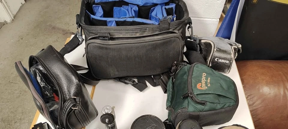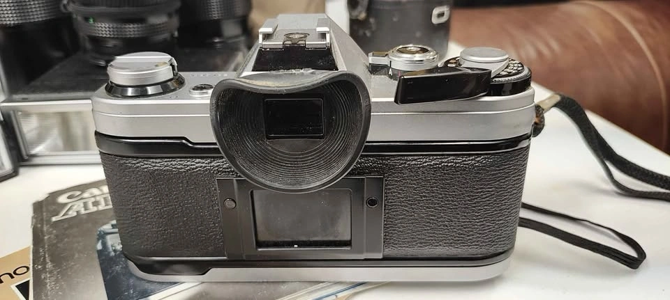 Circa 1976 old school single lens reflex film camera. Comes with 4 lenses (3 Canon, 1 Vivitar), 2 flashes, multiple carrying cases, original manuals, and a mini tripod. Feel free to message if you have any questions!
