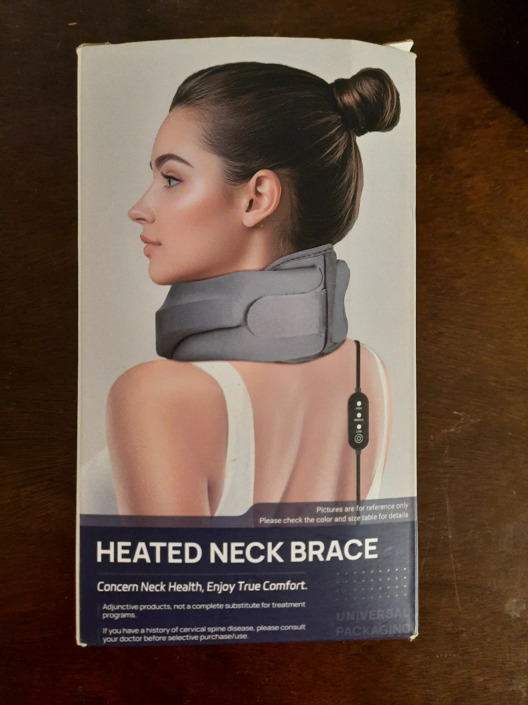 This is a heated neck brace designed for comfort. It's an adjunctive product, not a substitute for treatment programs. Consult your doctor if you have a history of cervical spine disease.