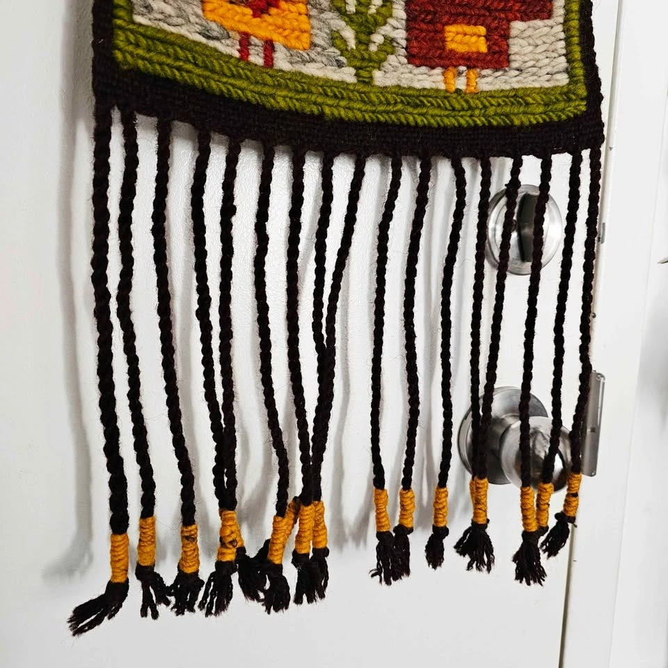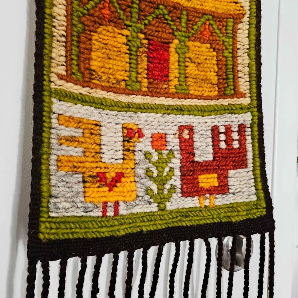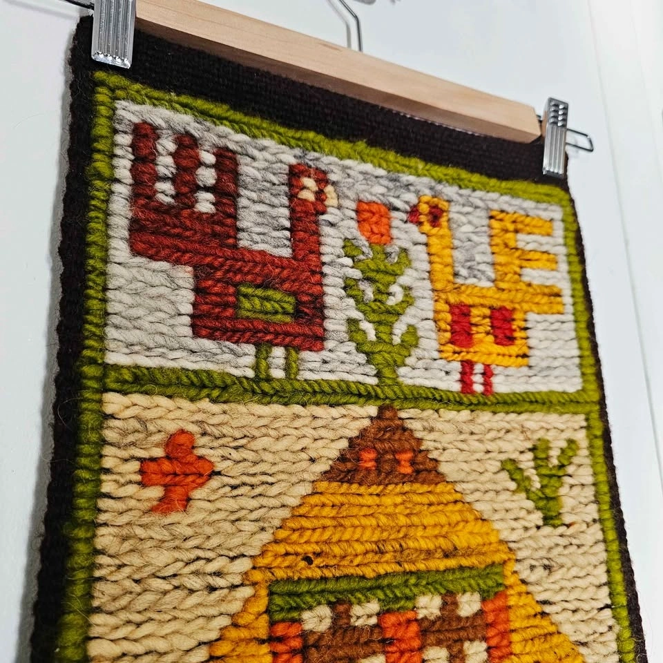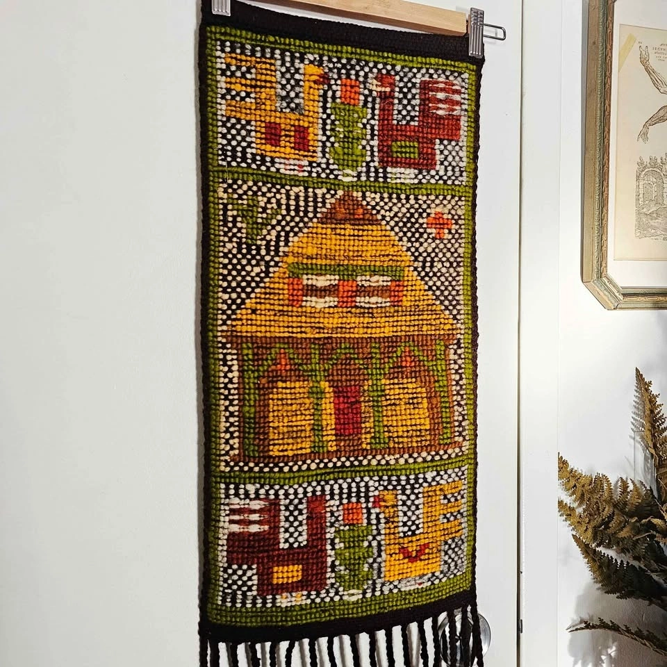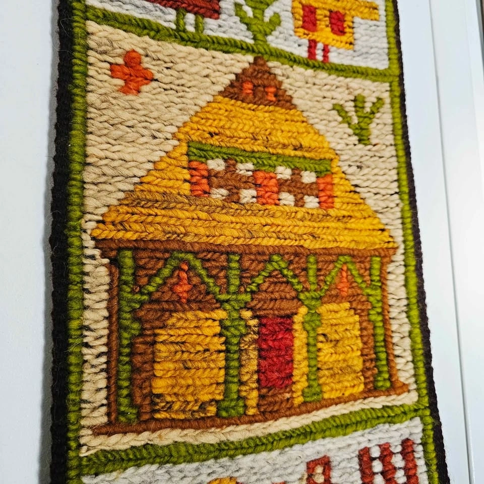 polish folk art, vintage wall hanging, wool tapestry, eastern european textile, 1960s home decor, 1970s home decor, handwoven wall art, boho wall decor, rustic cottagecore, lodgecore art, european folk textile, kitschy vintage decor, cozy bohemian, cabincore, cottage decor, farmhouse