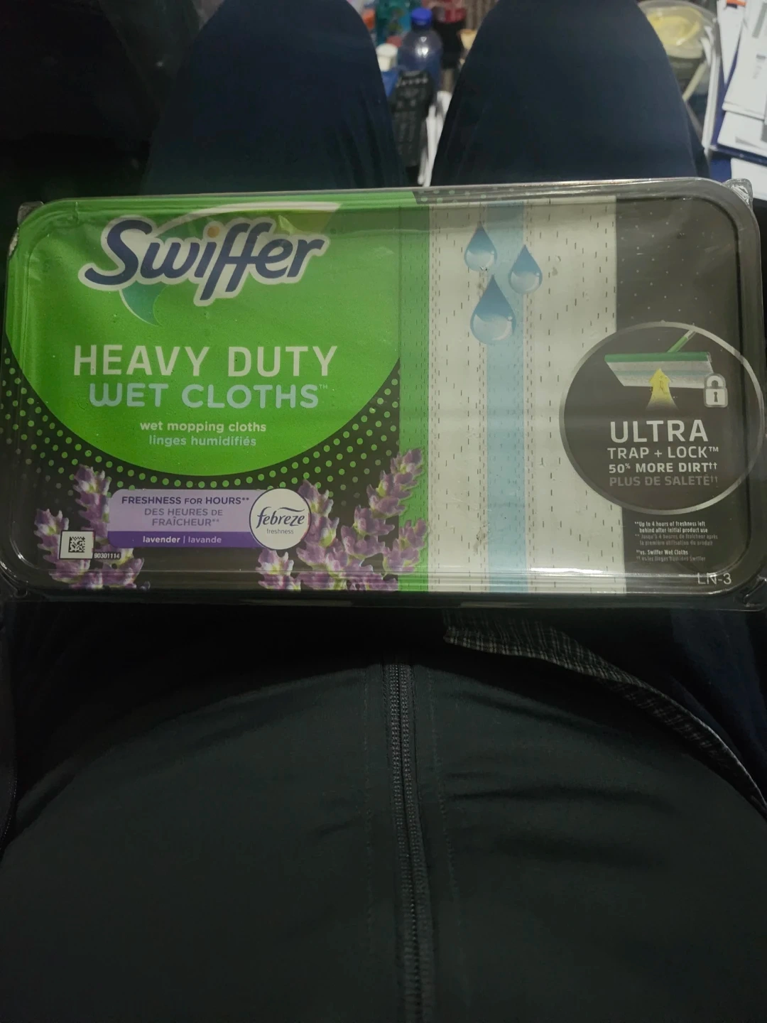 These are Swiffer Heavy Duty Wet Cloths in a lavender scent. They're designed with Ultra Trap + Lock technology to capture 50% more dirt. Freshens for up to 4 hours after initial use.