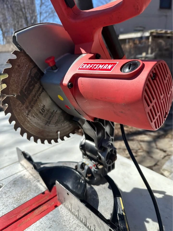 This is a used Makita LS1040 10-inch compound mitre saw. It's in good working condition. Perfect for various cutting tasks. Let me know if you have any questions!