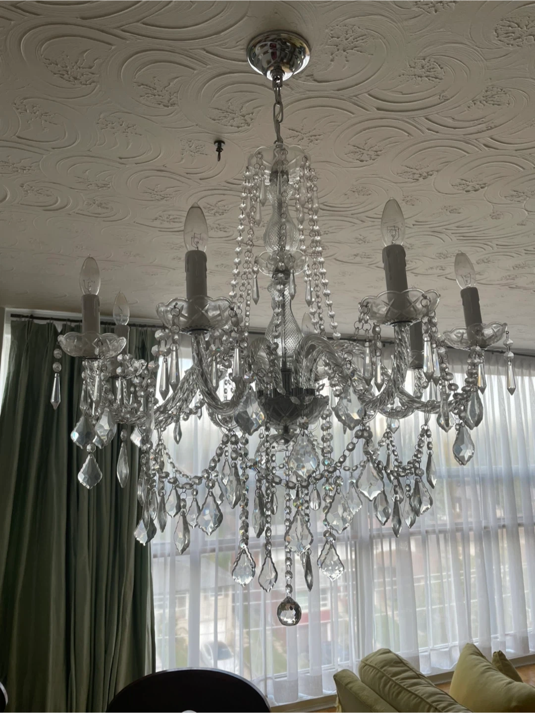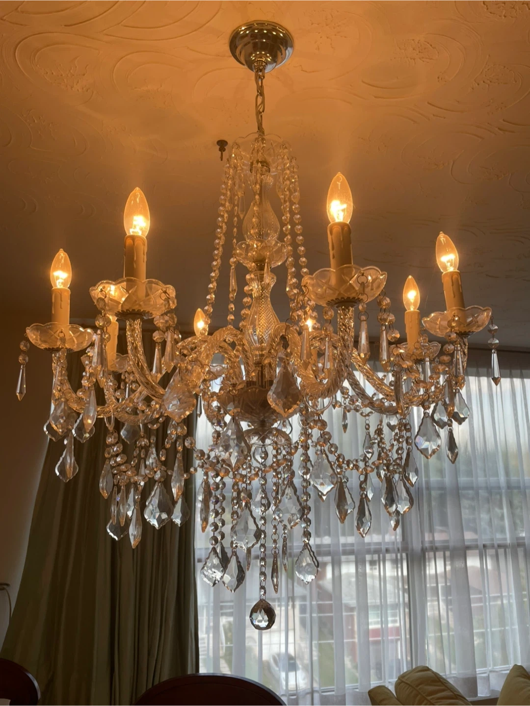 Selling a beautiful crystal chandelier! It would make a lovely addition to any room. The chandelier features multiple tiers of sparkling crystals, creating a dazzling display of light and elegance. The pictures taken are my own but I am selling the same one new in box , however 1 piece is missing from the box . Original price was around 400$ from wayfair , selling it for 150$