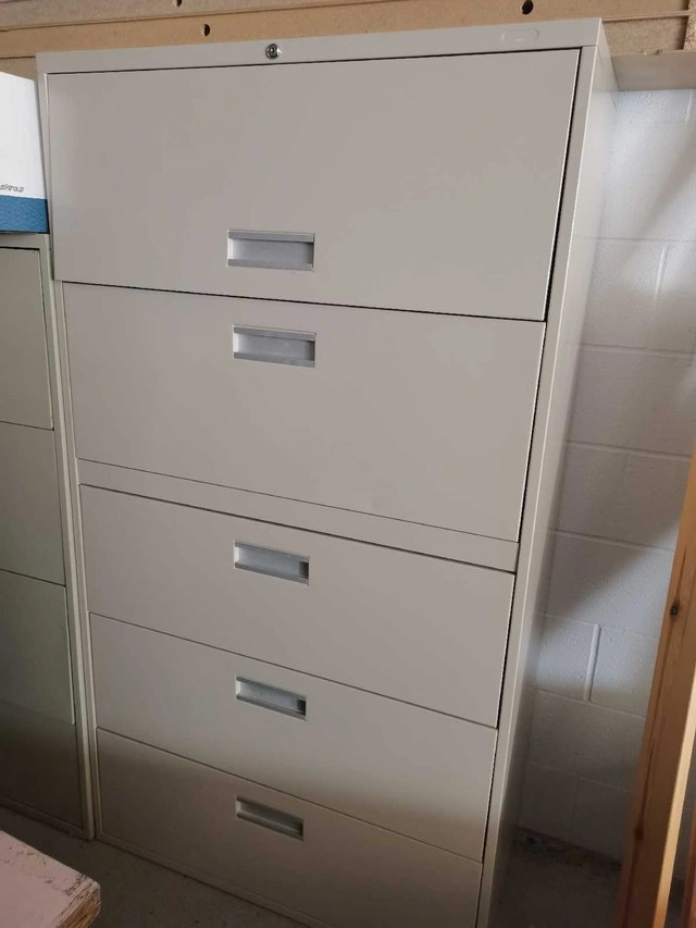 This used 5-drawer filing cabinet is perfect for organizing your documents and files with ease. It's a robust solution for any office or home workspace, offering ample storage in a vertical design. While it's been previously used, it remains fully functional and ready to serve your organizational needs.