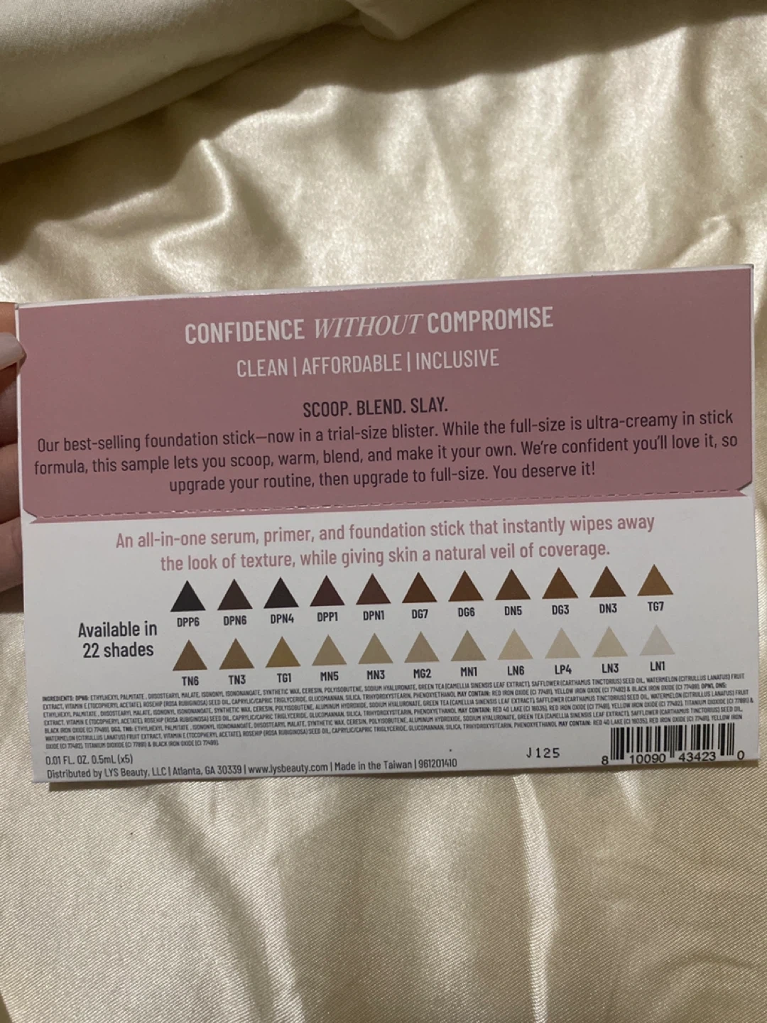 Trial-size LYS Beauty's best-selling foundation stick! Available in 22 shades. This IS NOT a full size product.