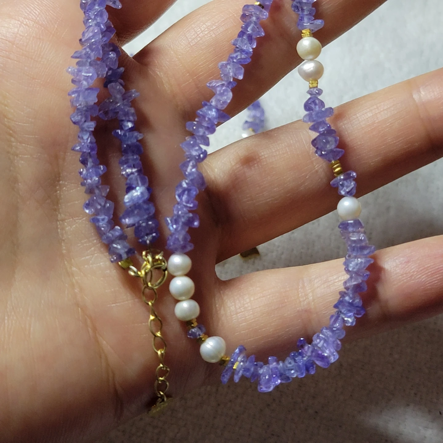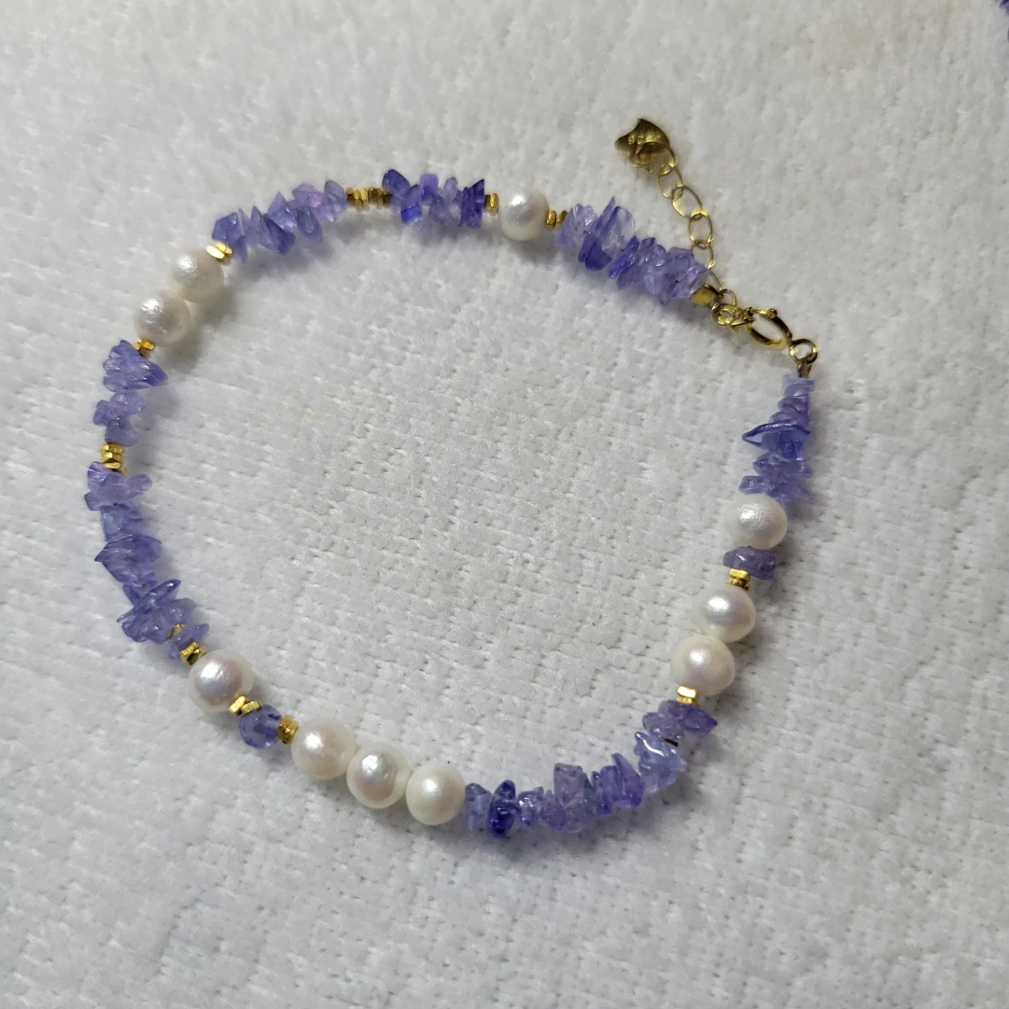 Beautiful 100 % natural tanzanite gemstone mixed with pearl beads very elegance set to any outfit !