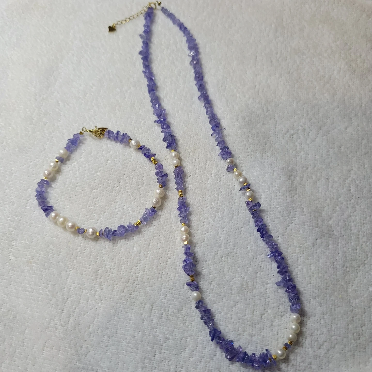 Tanzanite & Pearl Necklace and Bracelet Set