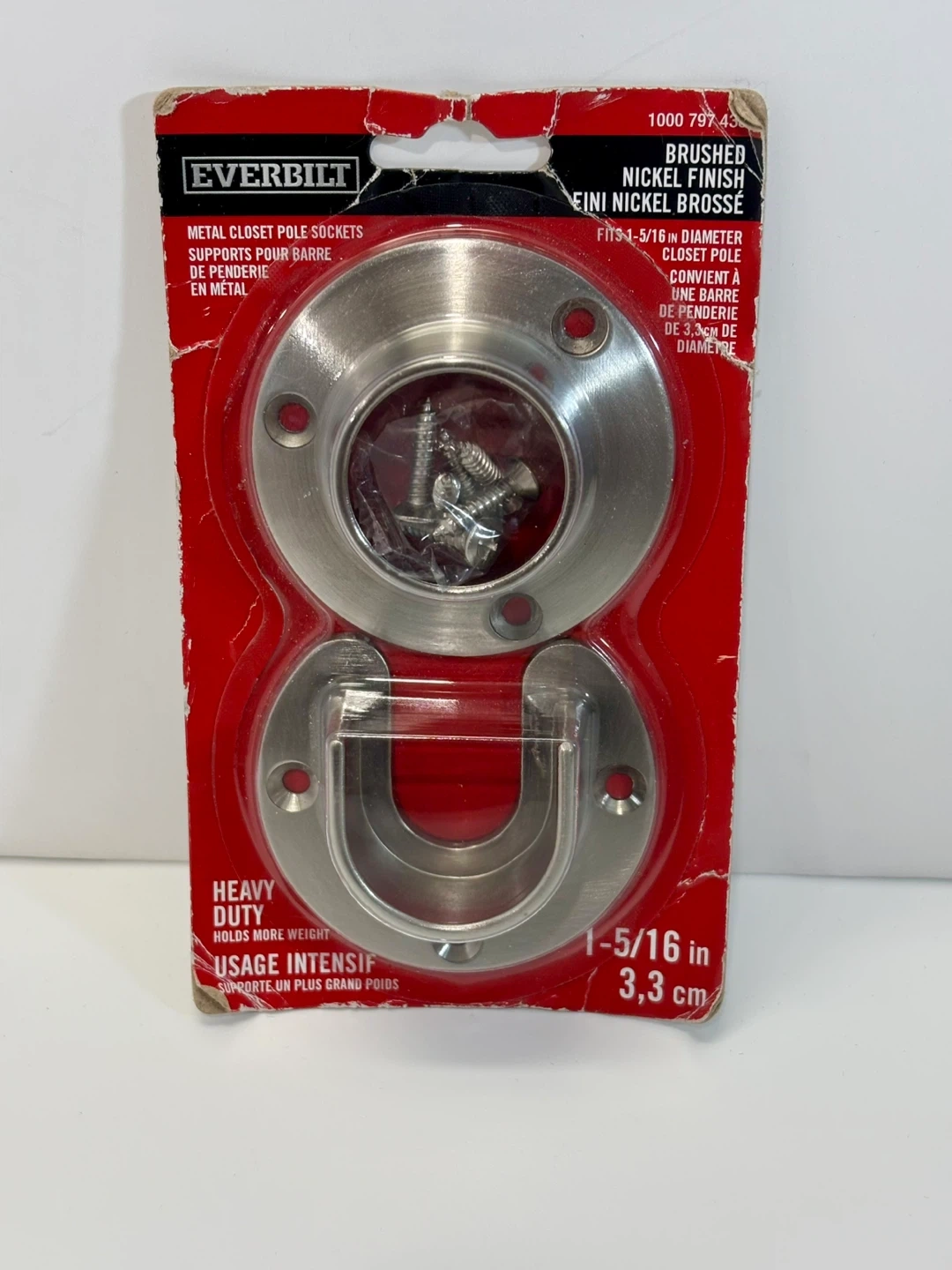 Everbilt 1-5/16 in. Brushed Nickel Heavy-Duty Closet Pole Sockets help you install a closet pole all the way to the wall. Ideal for use with closet poles from 1-1/4 in. to 1-5/16 in. in diameter, the sockets are crafted with solid, cast zinc bodies with an upscale brushed nickel finish. The pair includes 1 open-lip socket and 1 closed-lip socket, enabling you to install the sockets before inserting a closet pole.