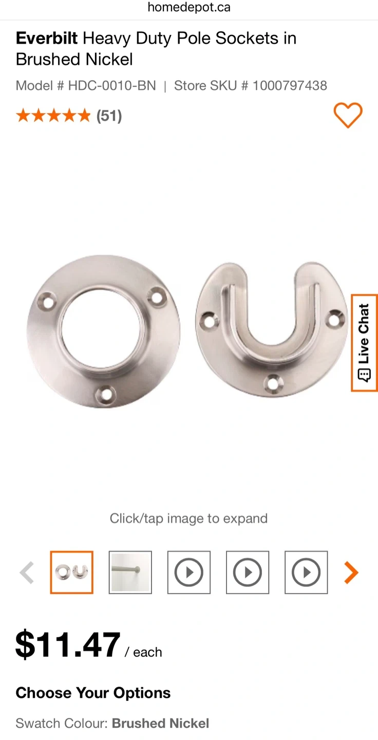 Closet Pole Sockets heavy duty Everbilt Brushed Nickel Metal