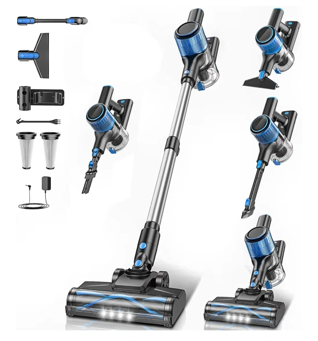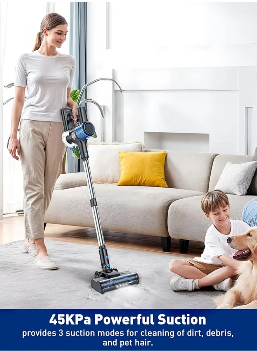 Cordless Vacuum Cleaner, 8 in 1 Powerful Suction Lightweight Vacuum Cleaner for Home with Self-Standing & LED Display, 3 Suction Modes, 45Mins Detachable Battery Vacuum for Hard Floor Carpet Pet Hair