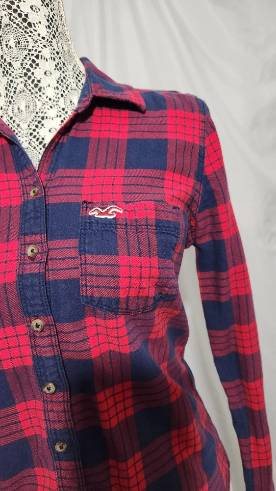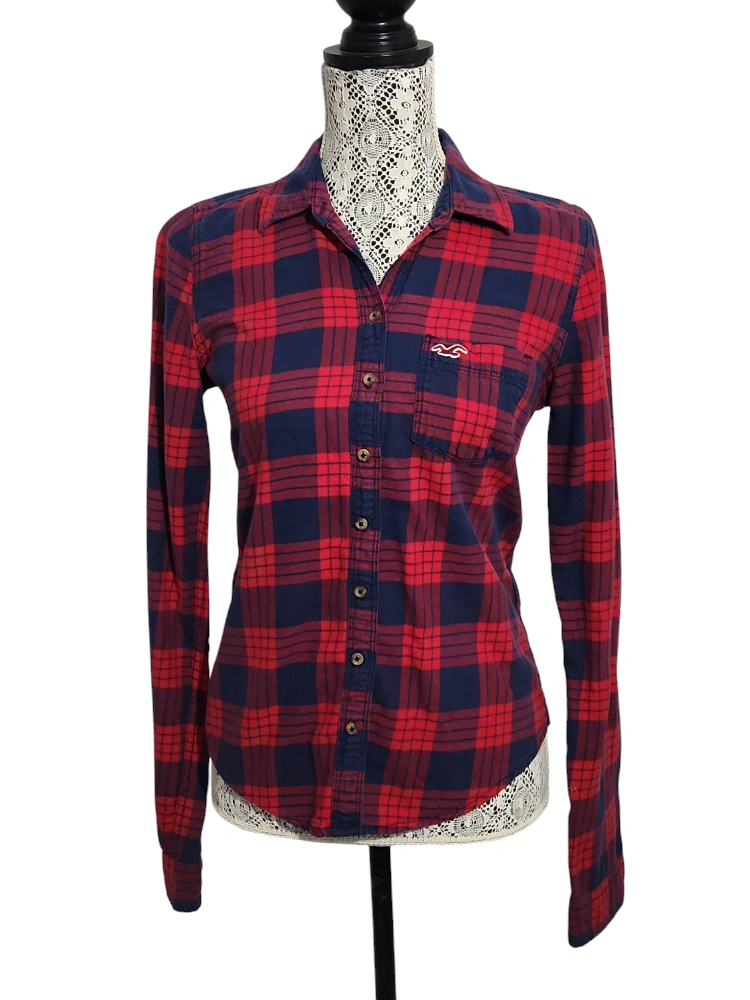 Hollister Red & Blue Plaid Flannel Shirt