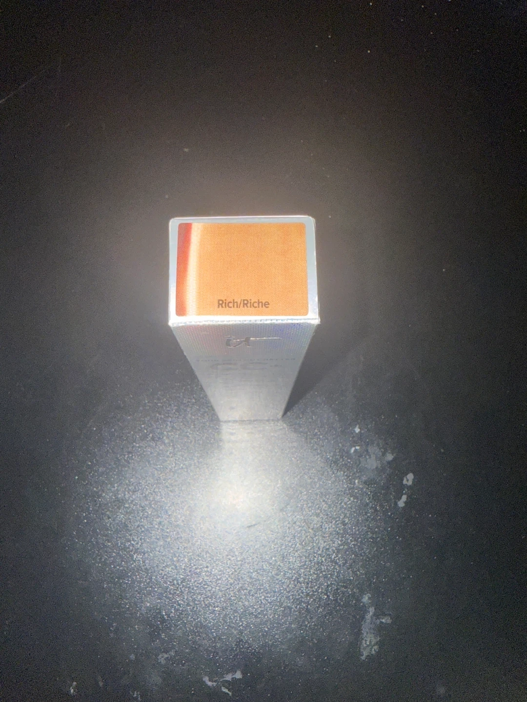 This IT Cosmetics CC+ Cream is the Rich shade, offering full coverage and color correction. It provides SPF 50+ UVA/UVB protection, working as an anti-aging hydrating serum. It's designed for a dewy finish.