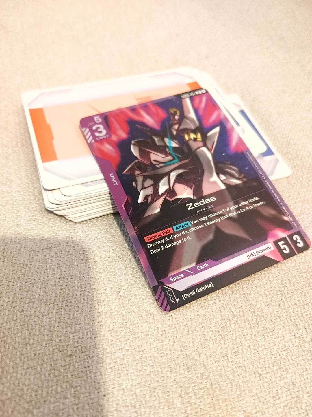 This is a Gundam trading card bundlefrom Bandai. Comes with holos and commons, all in great condition.