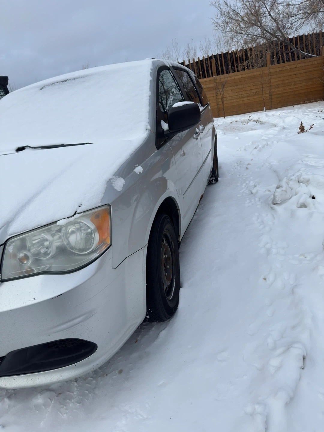 Silver minivan, some rust. Minor exterior damage. Backup camera .