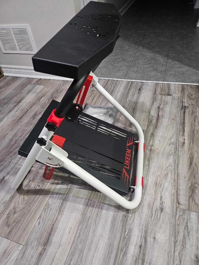 Get ready to rev your engines with this Likeem racing wheel stand! It's designed to provide a sturdy and immersive gaming experience for racing enthusiasts. The stand is used, but is still in good condition. Compatible with Logitech G25, G27, G29, G920, and Thrustmaster wheels. Key Features: - Foldable design for easy storage - Adjustable height and angle - Sturdy steel frame. Great for use on the PS5 or PC. Pick up only in Barrhaven area. Cash accepted.