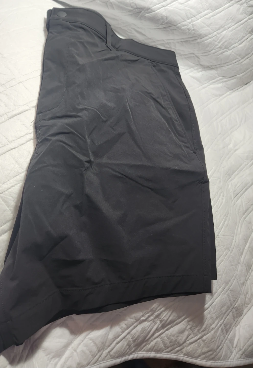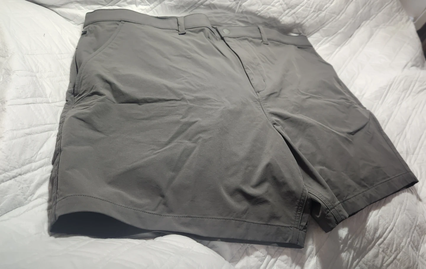 These men's grey shorts are designed for comfort and performance. They're made from a lightweight, quick-drying fabric perfect for active days. The classic fit includes belt loops and multiple pockets. Great for golf or everyday wear!
