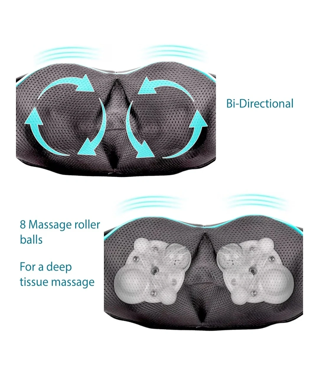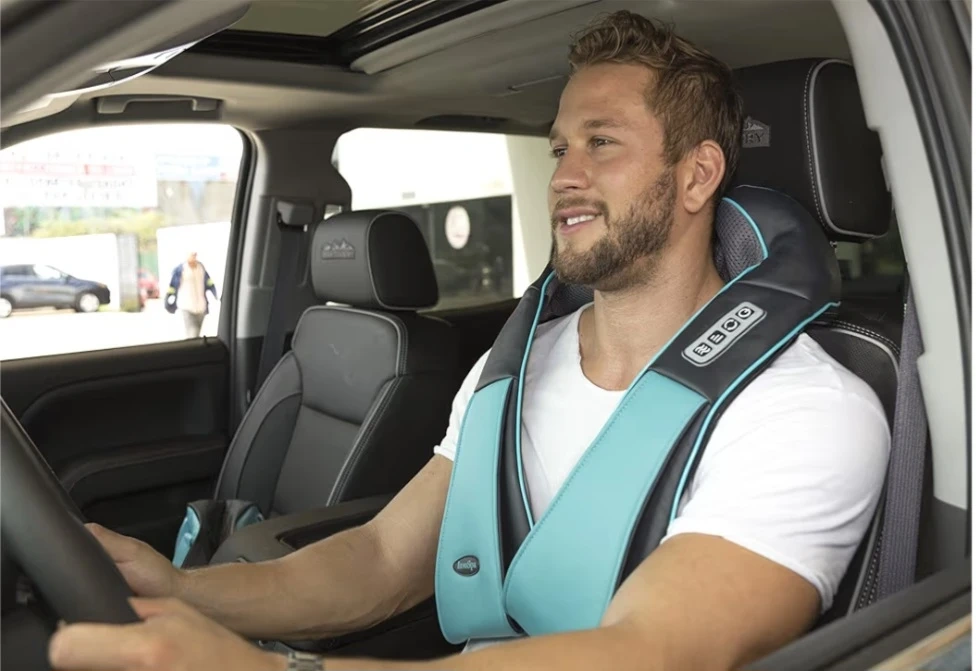 This Shiatsu massager features 8 deep-tissue massage roller balls with bi-directional kneading action. It has a heating function and adjustable intensity settings for a customizable massage experience. The breathable mesh fabric ensures comfortable use on your neck, shoulders, back, arms, or legs.