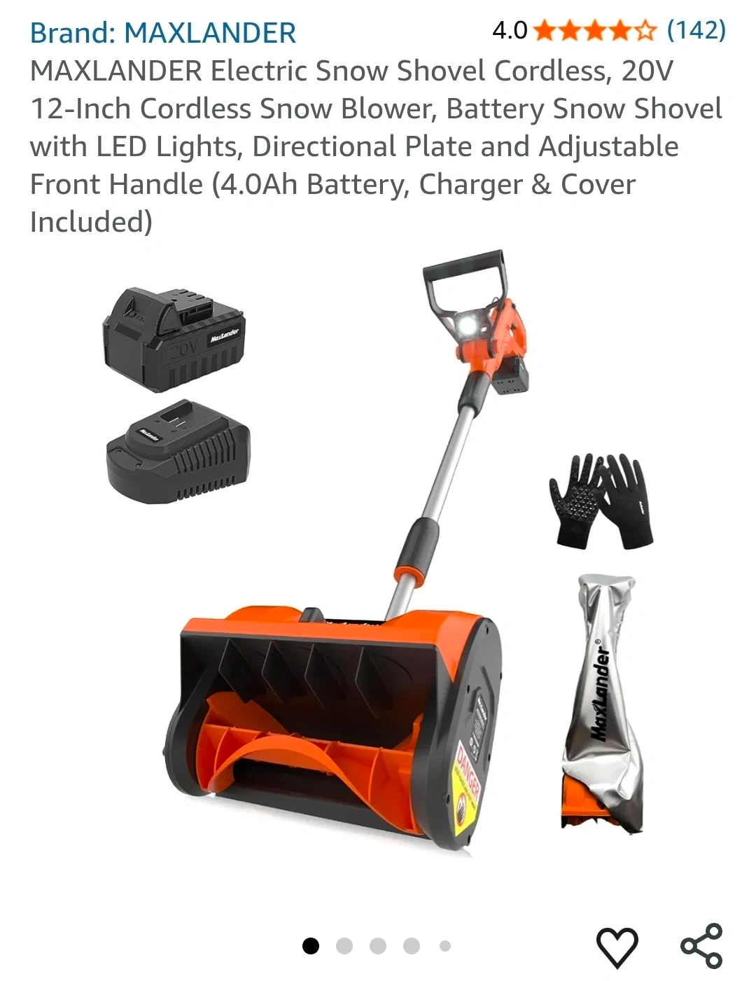 * Includes: 20V 12-inch electric cordless snow shovel, quick charger, snow shovel cover, and gloves