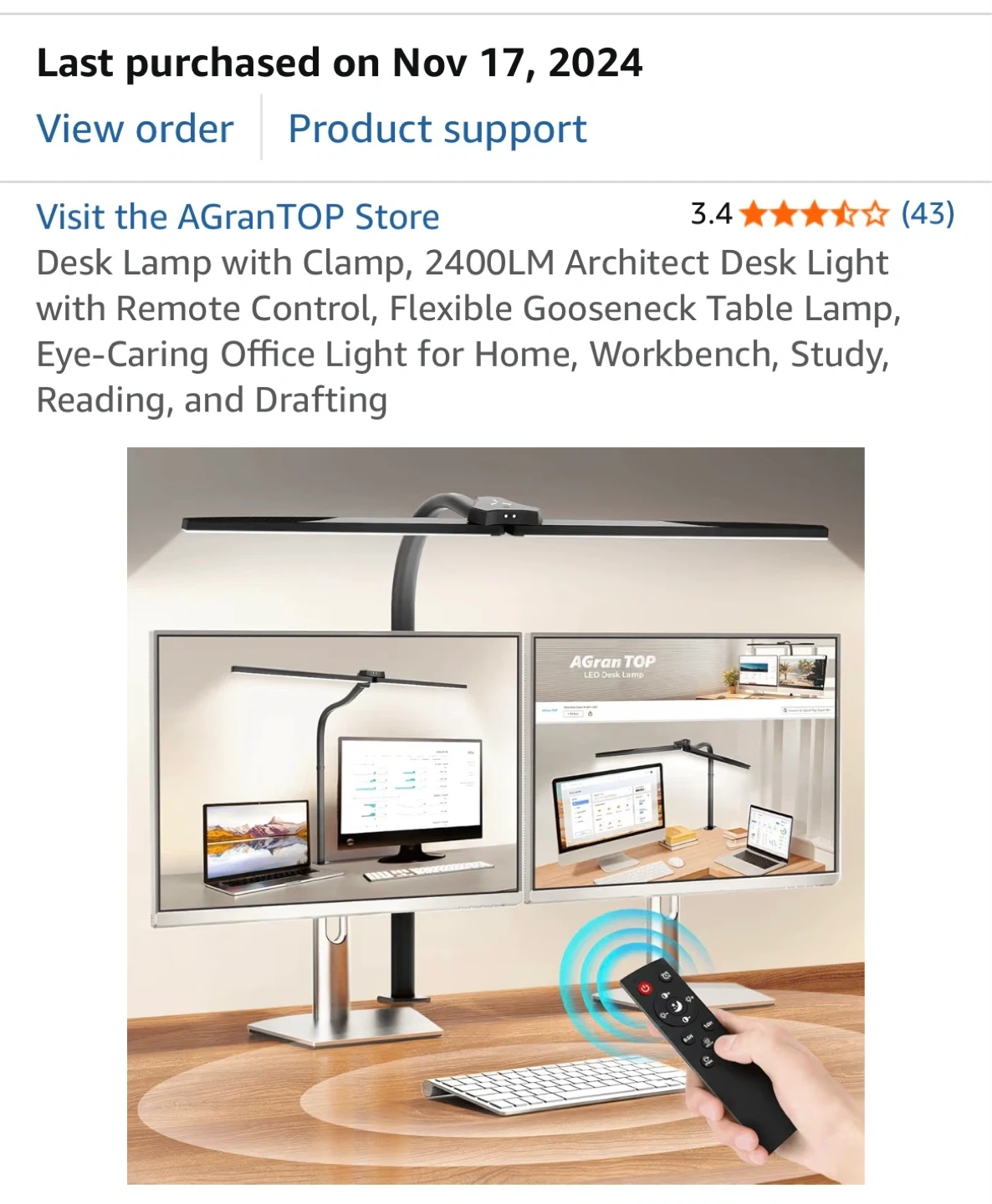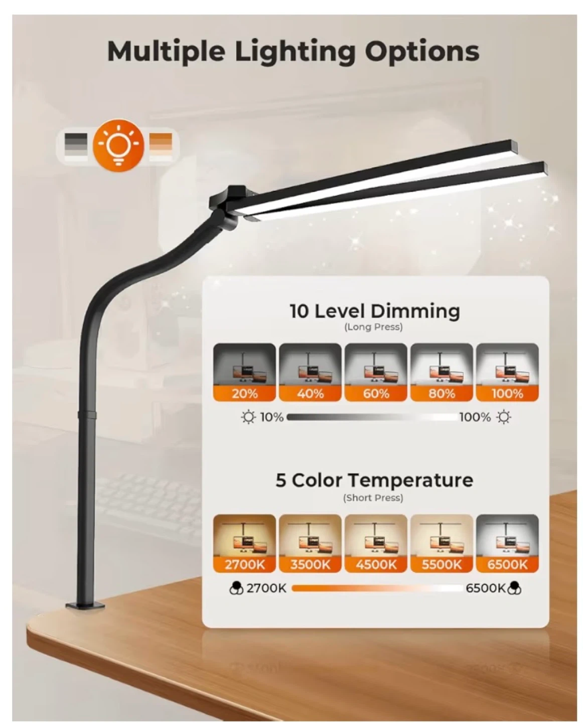 Desk Lamp with Clamp, 2400LM Architect Desk Light with Remote Control, Flexible Gooseneck Table Lamp, Eye-Caring Office Light for Home, Workbench, Study, Reading, and Drafting