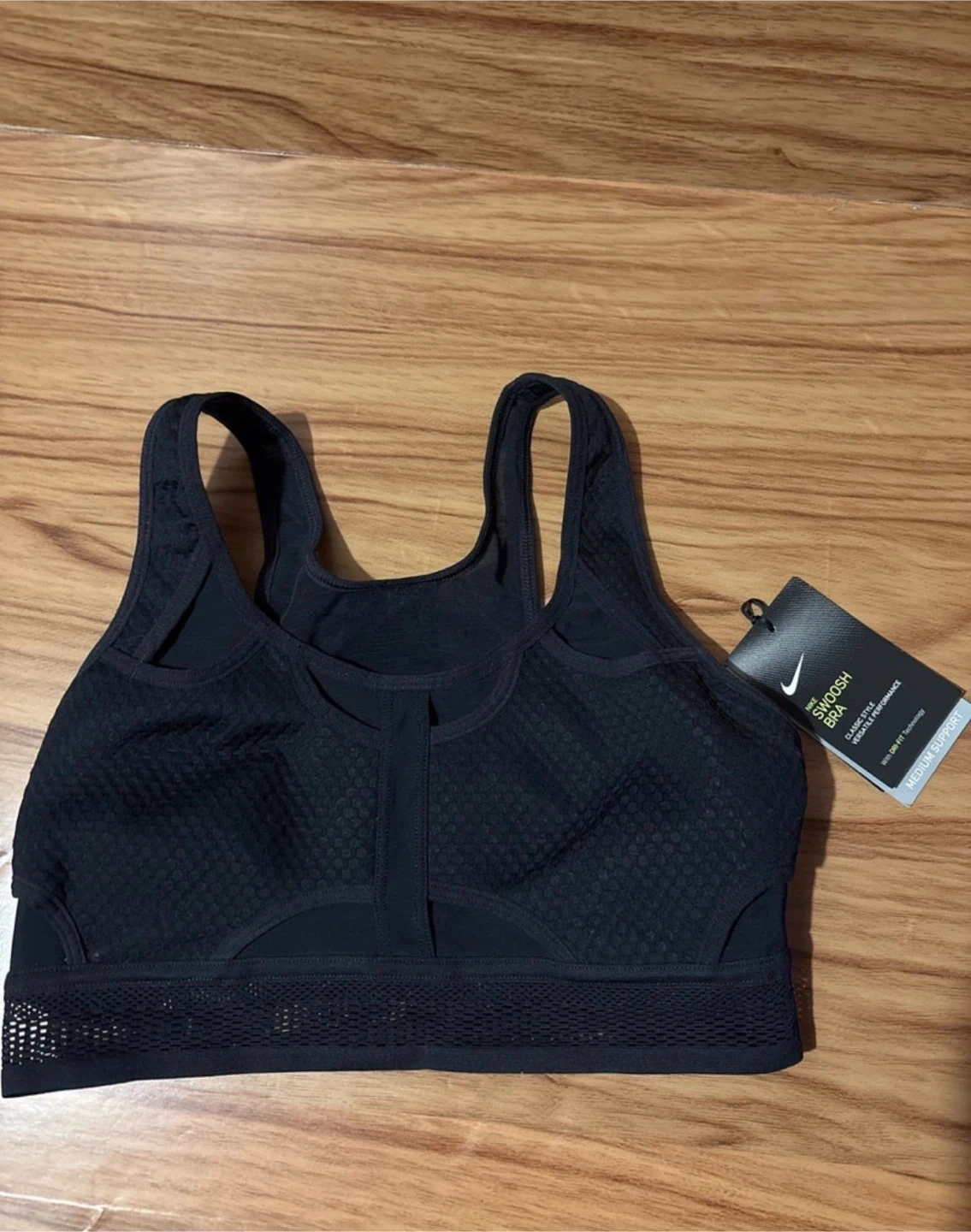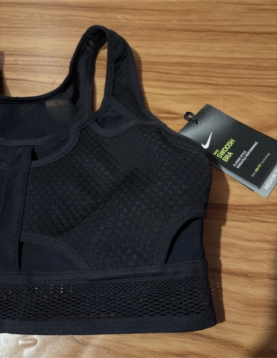 I'm selling a new Nike Swoosh Bra, perfect for medium support during workouts with DRI-FIT technology! This stylish and functional sports bra is designed to keep you comfortable and supported, whether you're hitting the gym or going for a run. I never got around to using it, so it's in pristine, new condition!