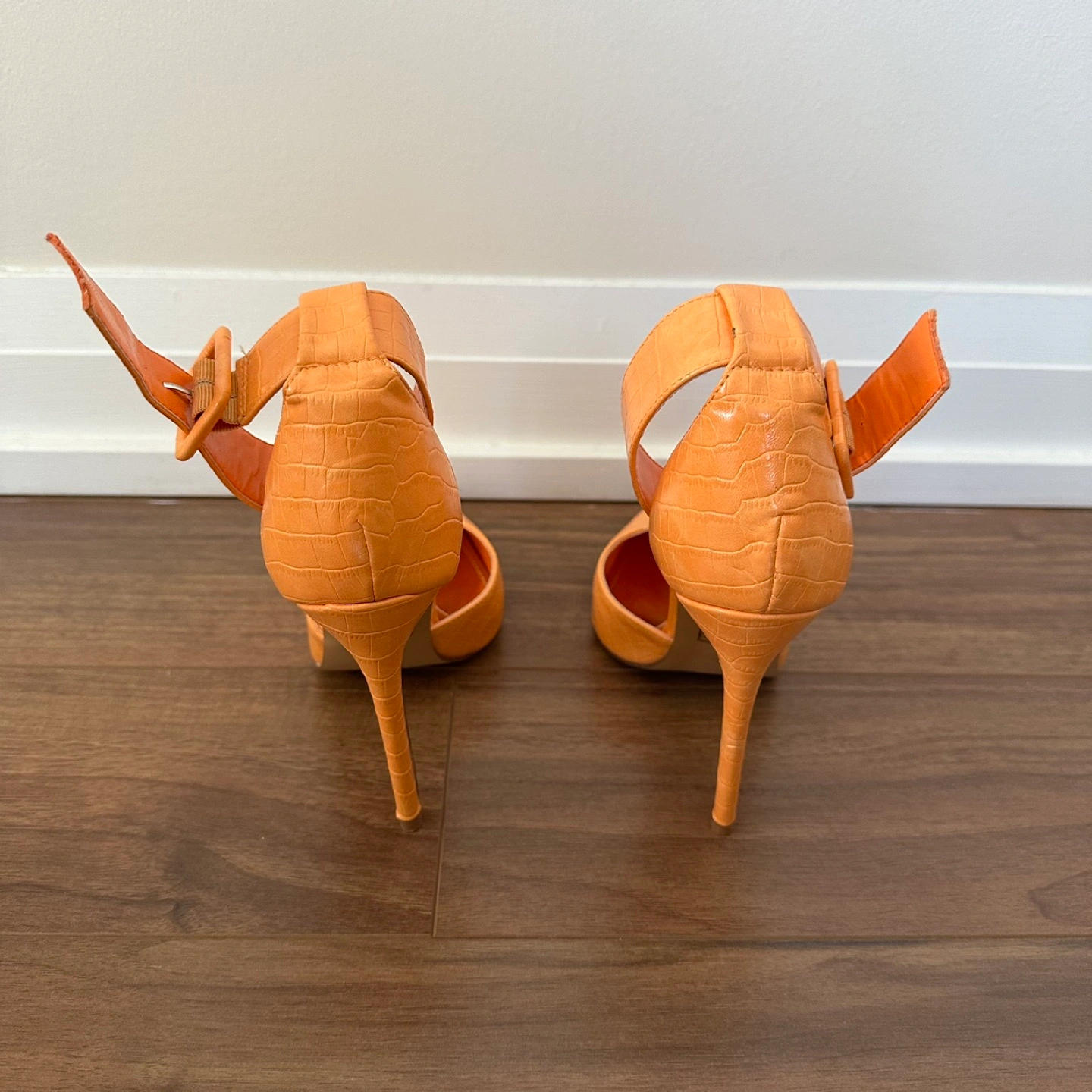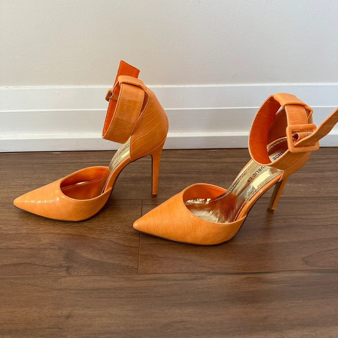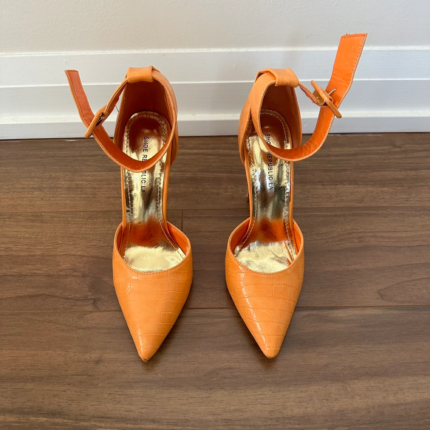 Brand new, never been worn orange ankle strap court heels from Shoe Republic LA. Size 7.5.