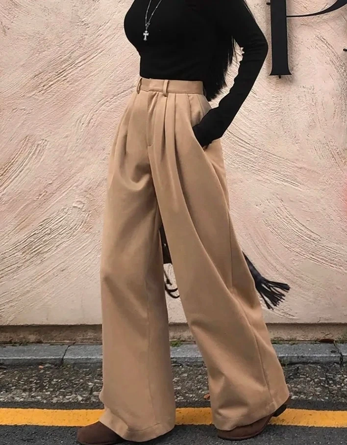 💓Style: Trendy wide-leg fit, perfect for office look or daily chic style.