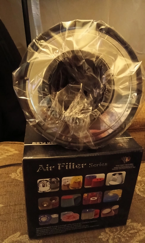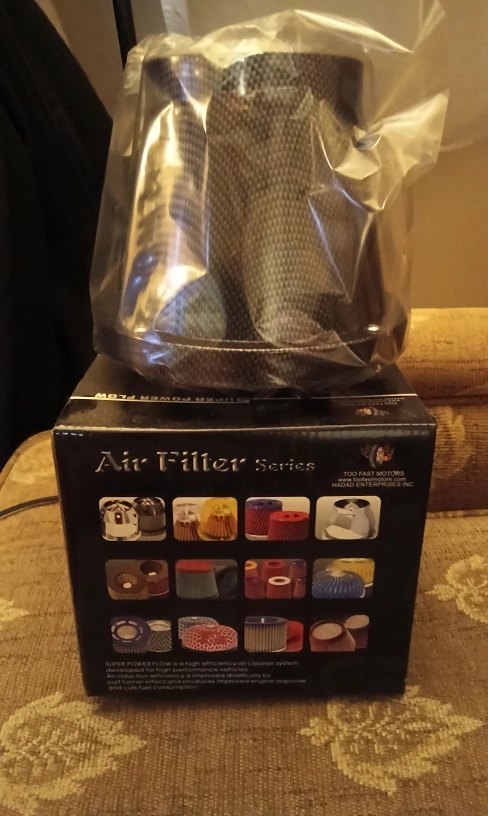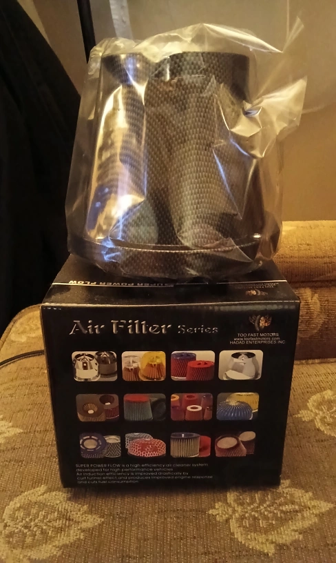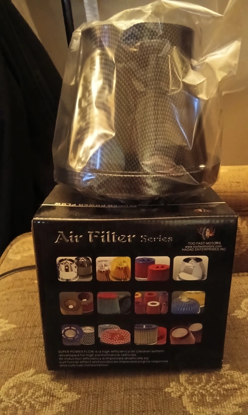 Selling a new Cold Air Too Fast Motors Air Filter Series still in its original packaging! The SUPER POWER FLOW design is a high-efficiency air cleaner system developed for high-performance vehicles. It improves induction efficiency, enhances engine response, and cuts fuel consumption. 3" inlet.