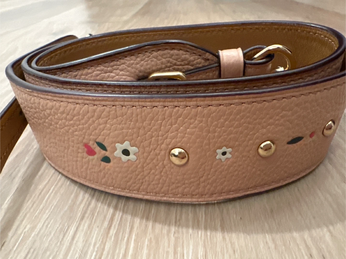 Coach Pink Leather Strap with Floral Embellishments