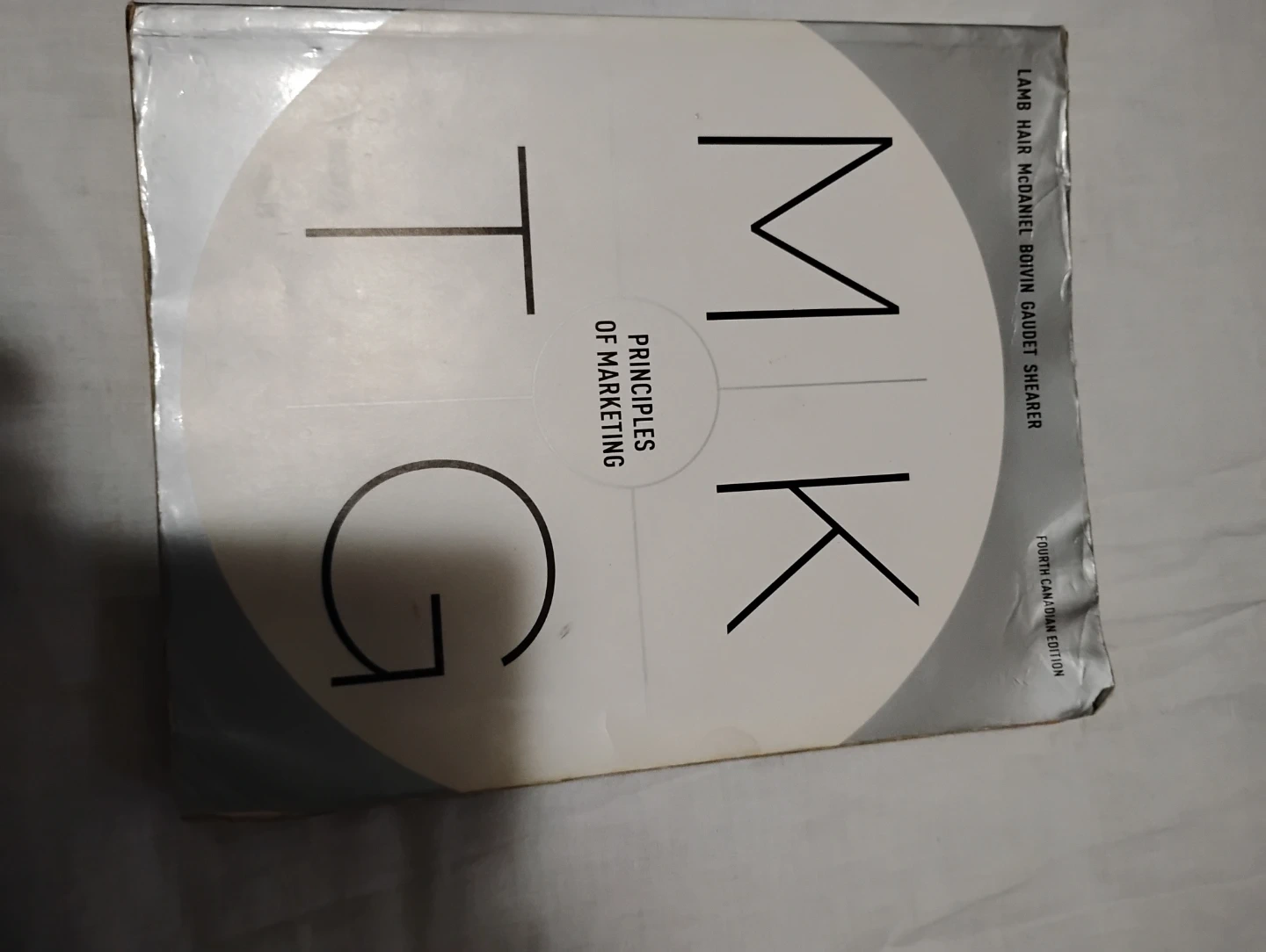 Principles of Marketing textbook by Lamb, Hair, McDaniel, Boivin, Gaudet, and Shearer. This is the Fourth Canadian Edition. It includes an access card for MKTG activate today!