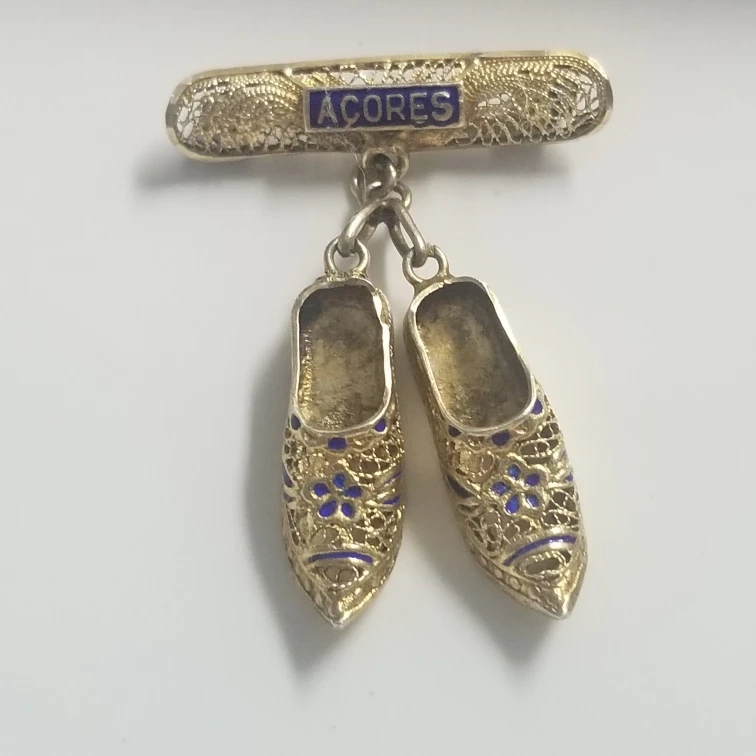 Vintage Fine Filigree Blue Enamel Dancing Dress Shoes lapel pin/brooch from Açores Portugal