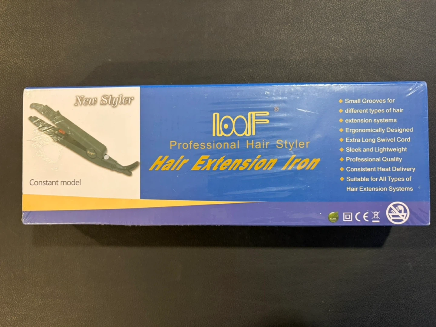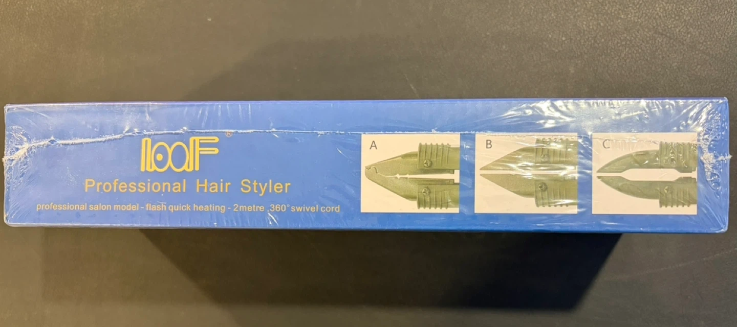 This is a brand new LOOF Professional Hair Styler, still in its original packaging! It features a flash quick heating system, a 2-metre swivel cord and is suitable for all types of hair extension systems. It also has small grooves for different types of hair extension systems.