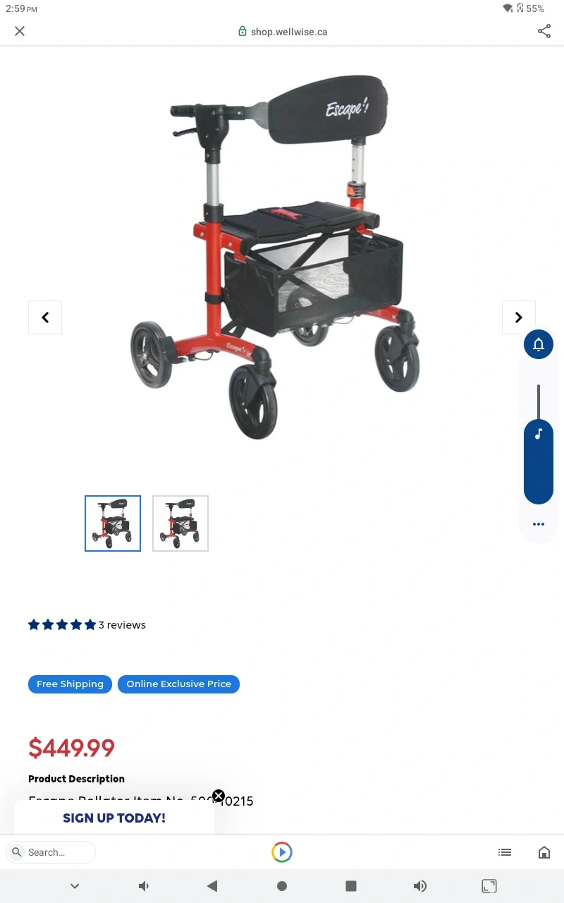 This red Escape rollator walker comes with a seat and a basket. It's designed to assist with mobility. It's great for getting around the house or on errands!