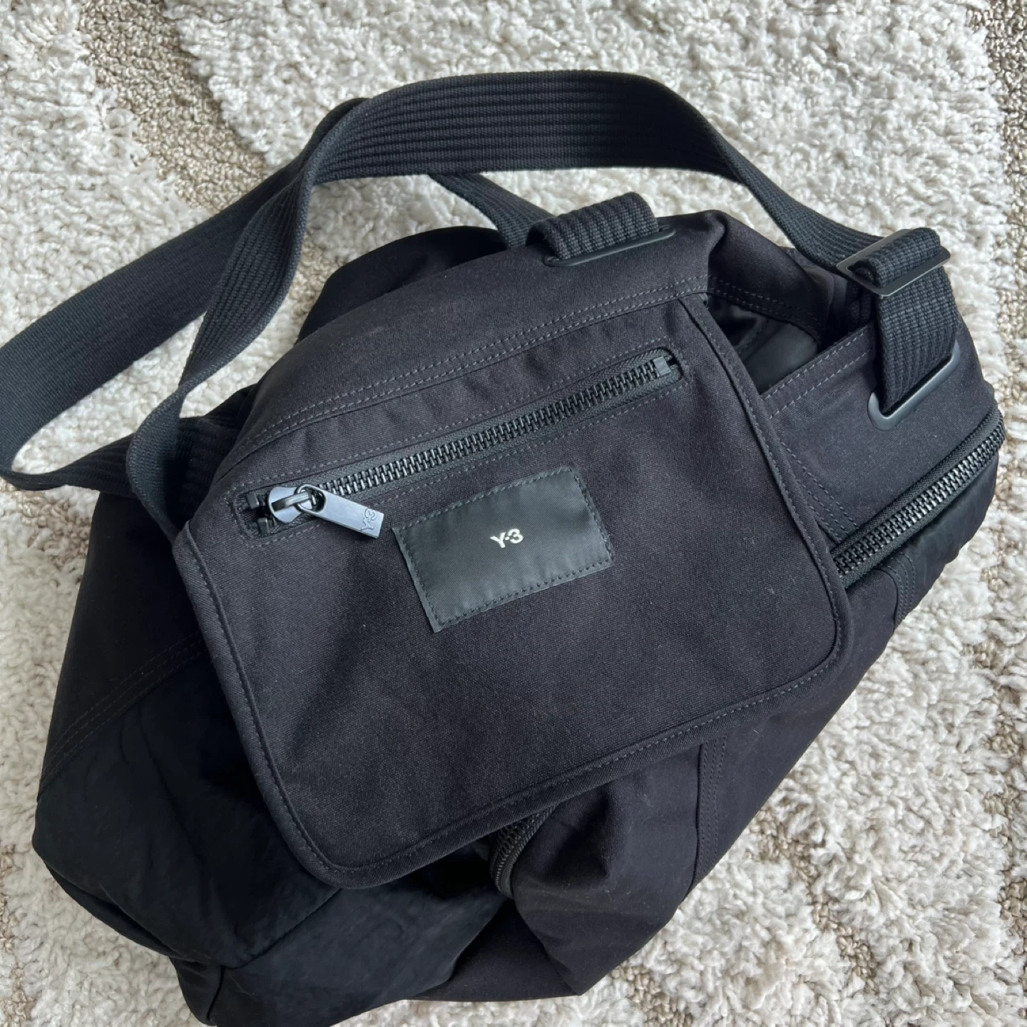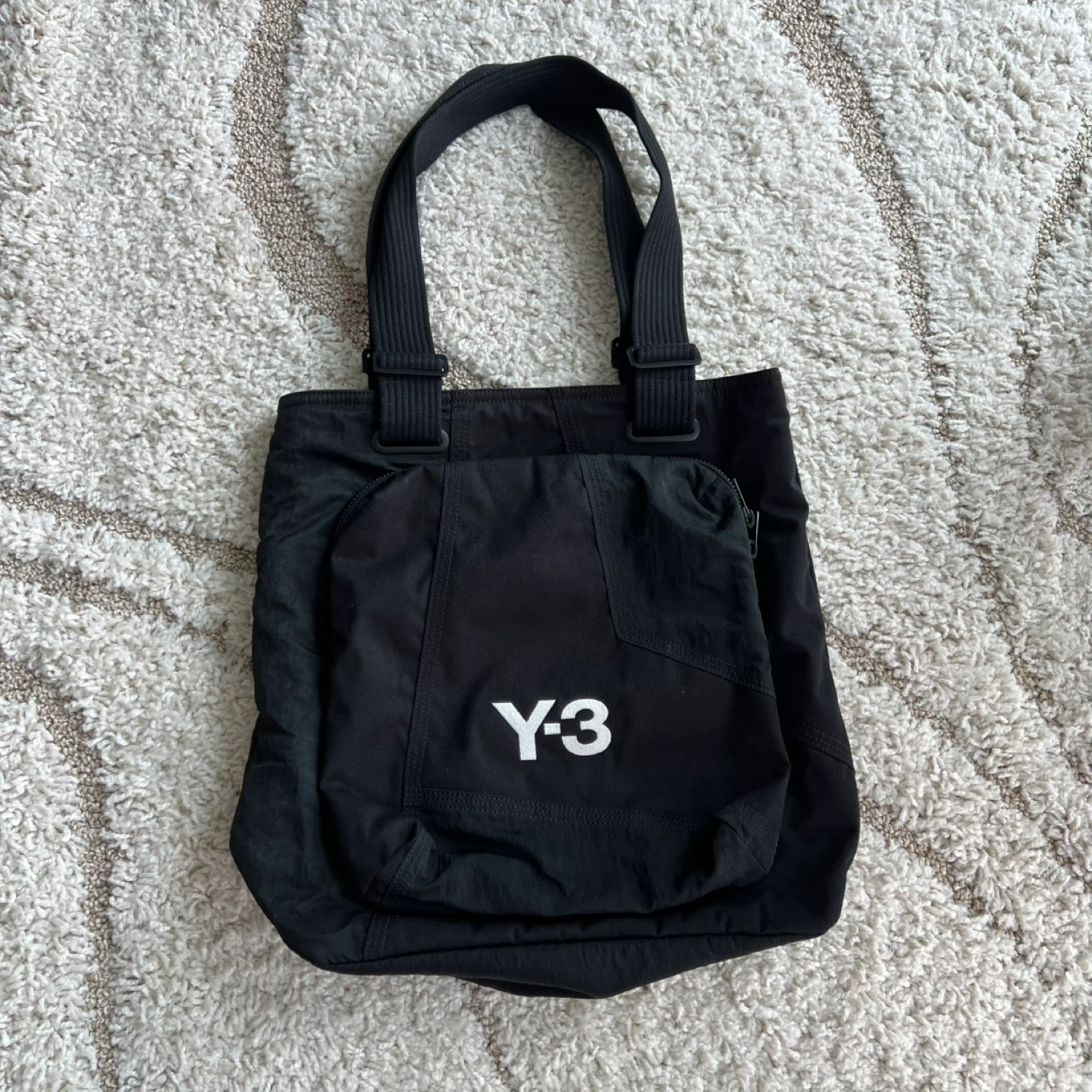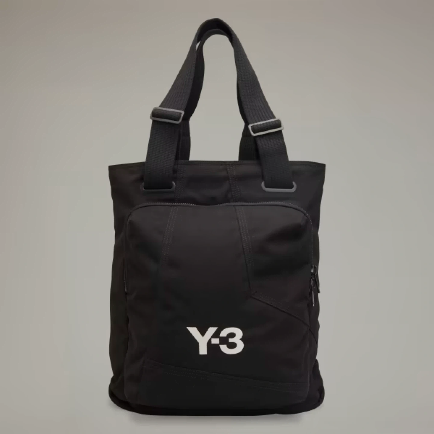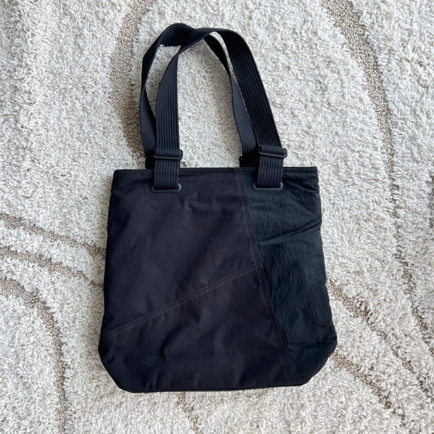 Packable recycled polyester canvas and recycled nylon taffeta tote in black. Logo embroidered at face. • Adjustable twin carry handles • Zip pocket at face • Zip pocket at interior • Patch pockets at interior • Twill lining • H17.5 × W17.5 x D5.5 • Dust bag included