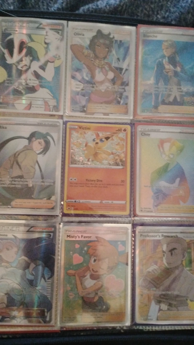 Collection of various Pokémon trading cards, featuring different Pokémon and trainers. Includes some rare V and GX cards. Great for collectors or players looking to expand their deck! All really rare some very old if wanting the whole binder it would be 1250 I did add up all the cards prices and all are in mid conditions