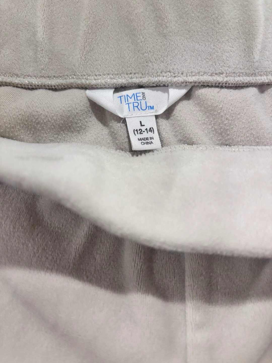 Super soft and cozy velour jogger-style pants by Time and Tru. These have a smooth, velvety feel with comfortable stretch, making them perfect for lounging, travel, or casual everyday wear. Features an elastic waistband and a relaxed fit with a tapered leg for comfort without looking bulky. Size: Large (12–14) Brand: Time and Tru Color: Neutral beige / taupe/ cream Fabric: Stretchy velour / velvety soft Excellent condition Comfortable, easy-to-style lounge bottoms that pair well with tees, sweaters, or hoodies.