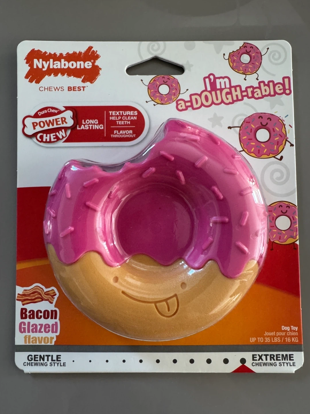 Nylabone Power Chew Donut Dog Toy - Bacon Glazed Flavor - Medium