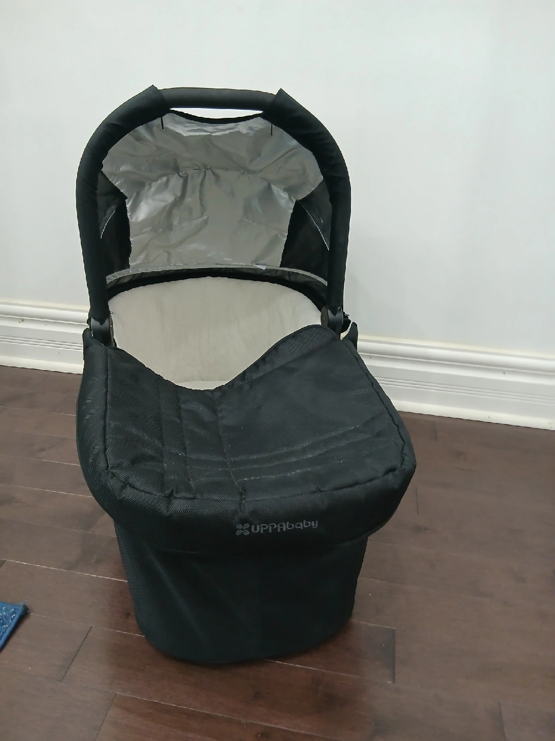 Selling a gently used UPPAbaby bassinet in black. It's in great condition and ready for a new little one. Perfect for walks or as a comfy spot for naps!