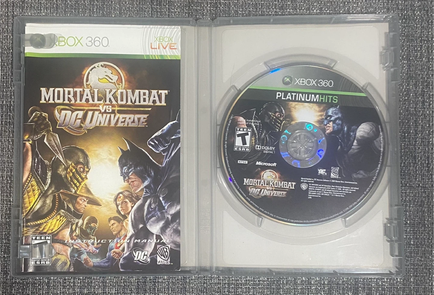 Selling Mortal Kombat vs DC Universe Platinum Hits game for Xbox 360. It’s complete in box and in mint condition. This fighting game features characters from both the Mortal Kombat and DC universes. Everything has been tested and working flawlessly. Check out my other listings for more video games and collectibles.
