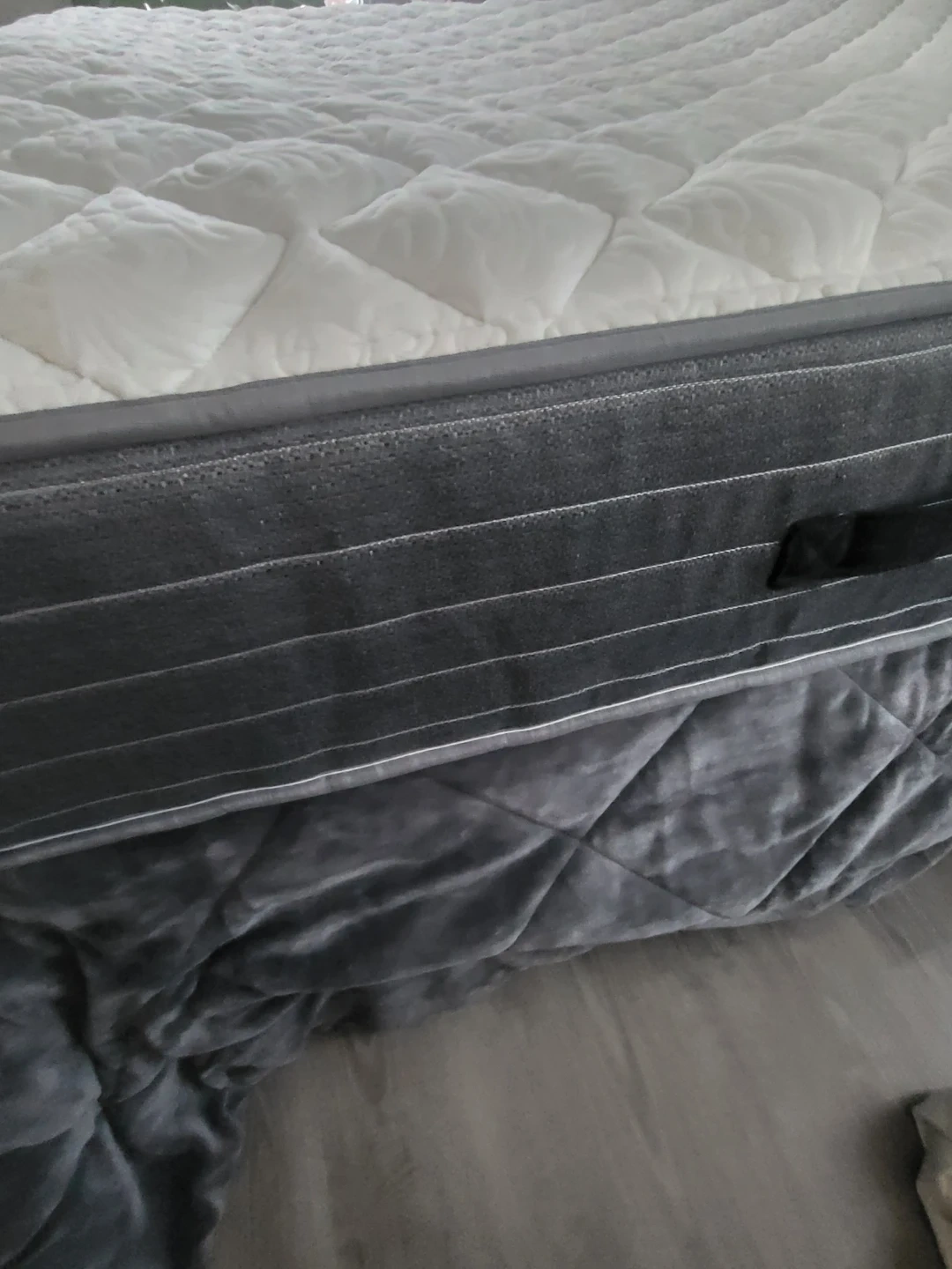 Queen size Mattress with quilted top and grey side panels.