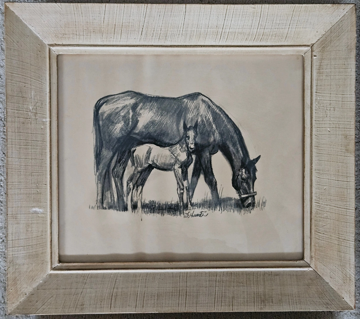 A set of 4 prints from the 1950's signed by American artist. D. Schwartz. Each print measures 12" x 10 1/4" and with the frames the dimensions are 16 1/4" x 14 1/2".