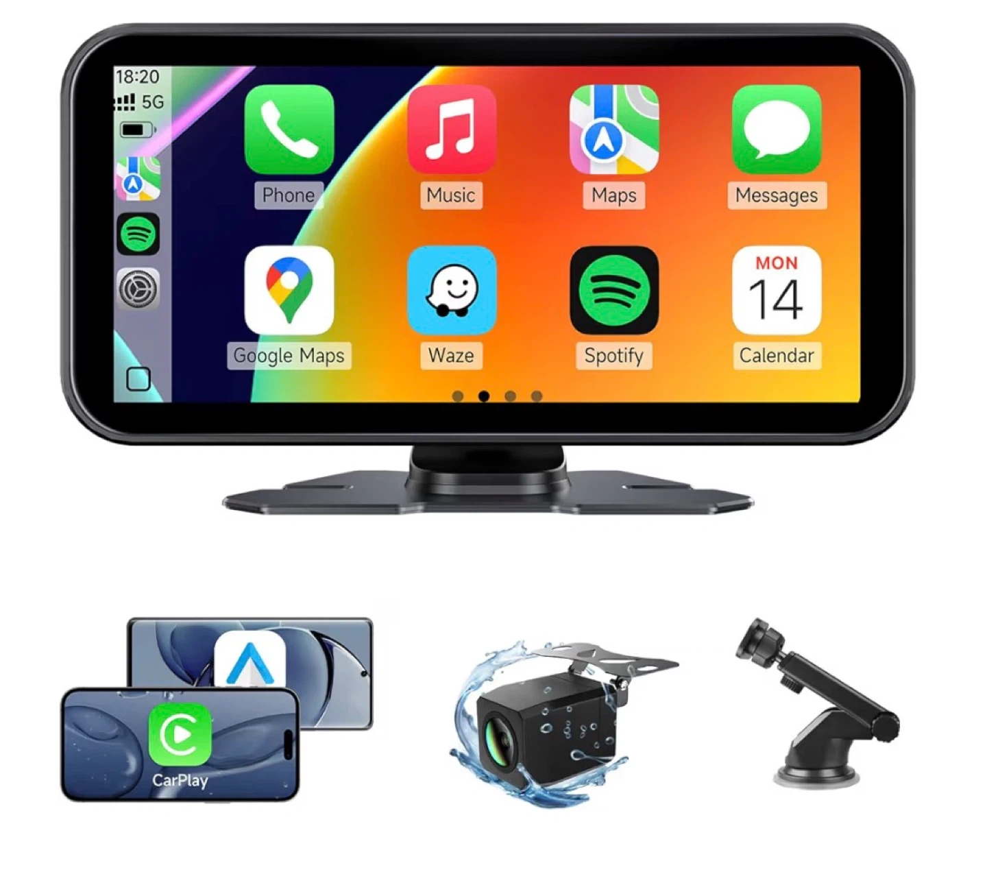 This is a brand new 6-inch portable touchscreen display for your car that supports Wireless CarPlay, Android Auto, and Mirror Link. It also includes Siri/Google Assistant support for hands-free control of music, calls, and messages. Comes with a backup camera and GPS navigation.