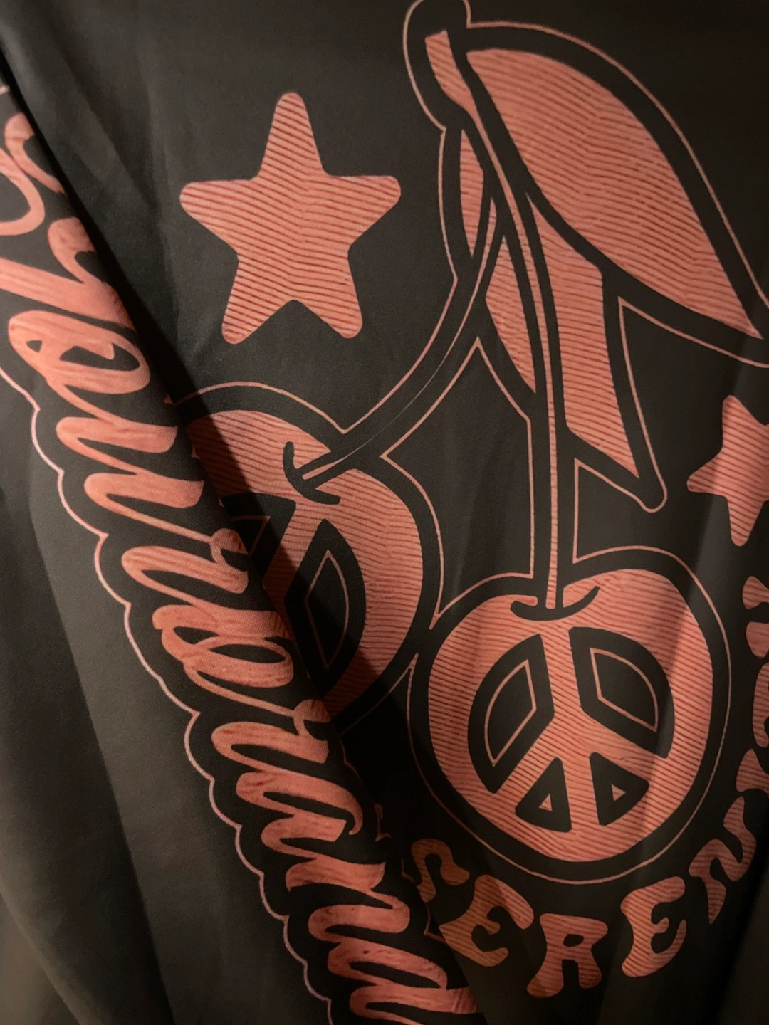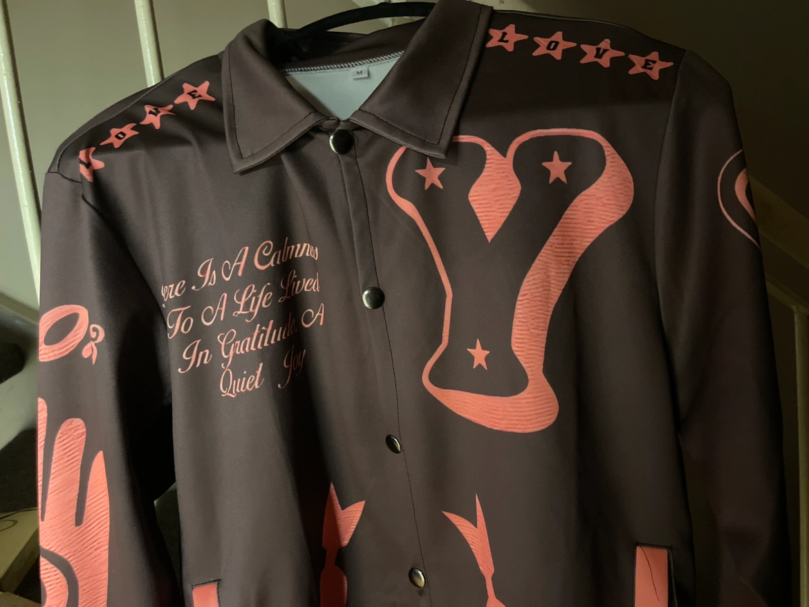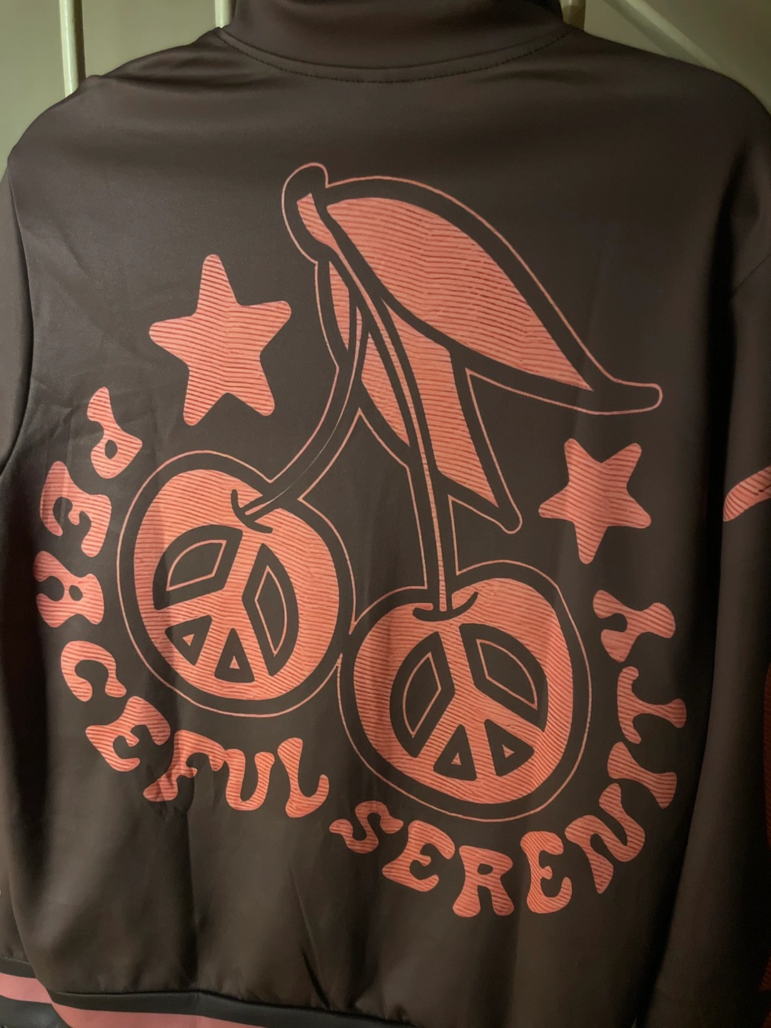 Unique brown jacket. Features a large Y and cherries with peace signs on the back. Relaxed fit. BRAND NEW condition. Never been worn.
