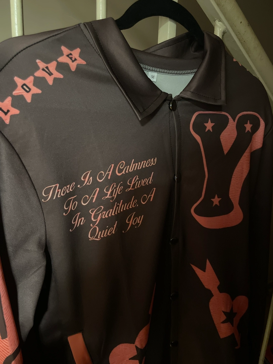 Y2K Brown Jacket with Cherries and Stars Varsity Jacket