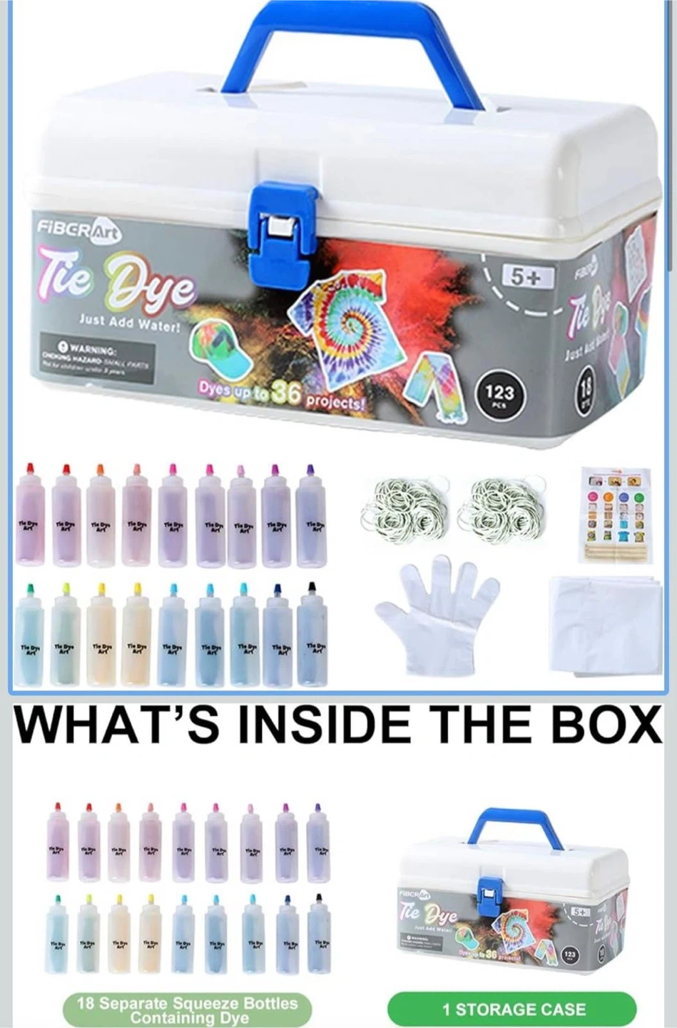 It's designed for over 18 people to play together and dyes up to 36 projects. Enjoy creating your own tie-dye masterpieces!