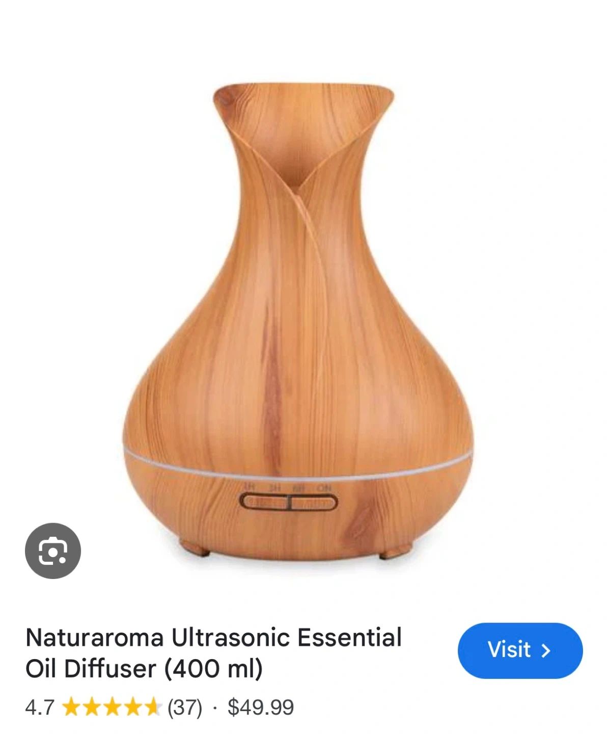 This Naturaroma ultrasonic essential oil diffuser holds 400 ml. It has multiple timer settings, including 1H, 3H, and ON. It's a great way to add fragrance to your home!